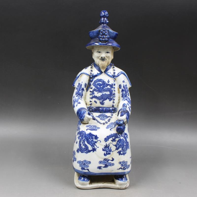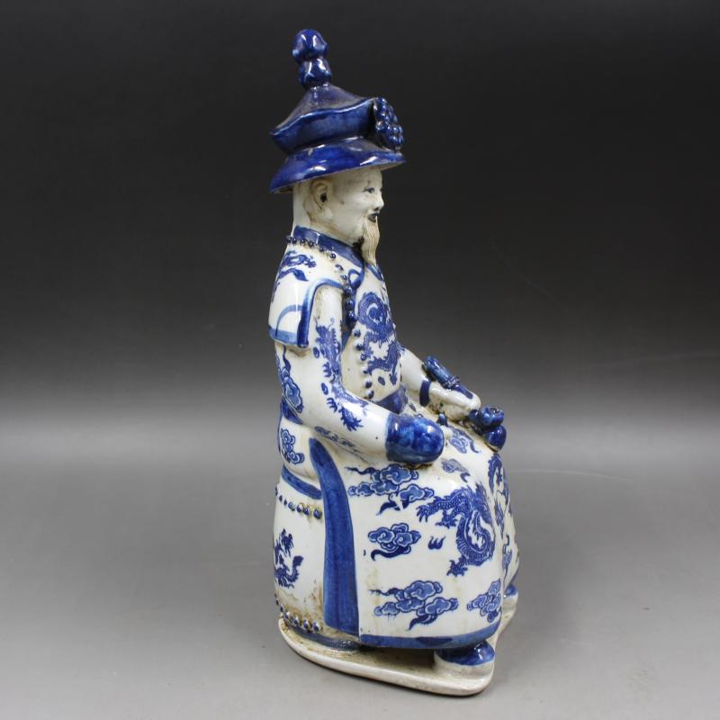 清雕塑青花人物康熙像 家居擺件 仿古老貨瓷器擺件 古董古玩收藏1入
