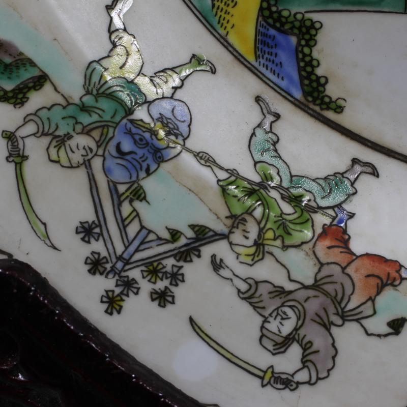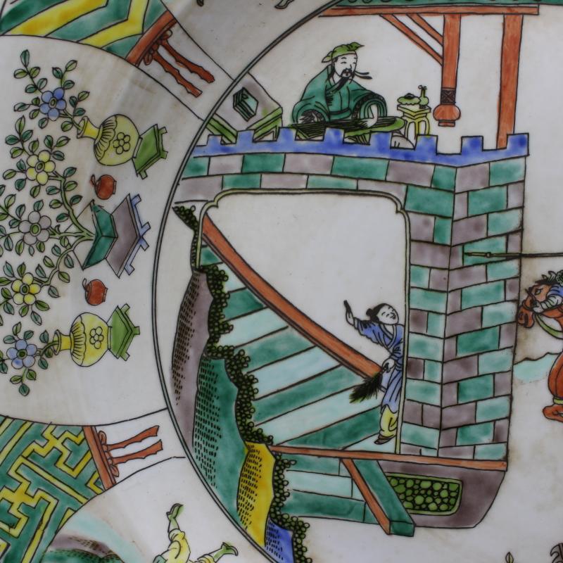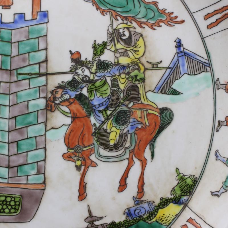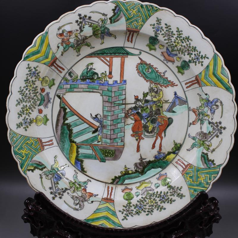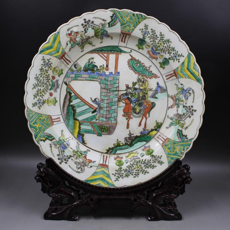 清康熙年制五彩人物故事葵口大盤 手工仿古老貨瓷器擺件 古董古玩1入