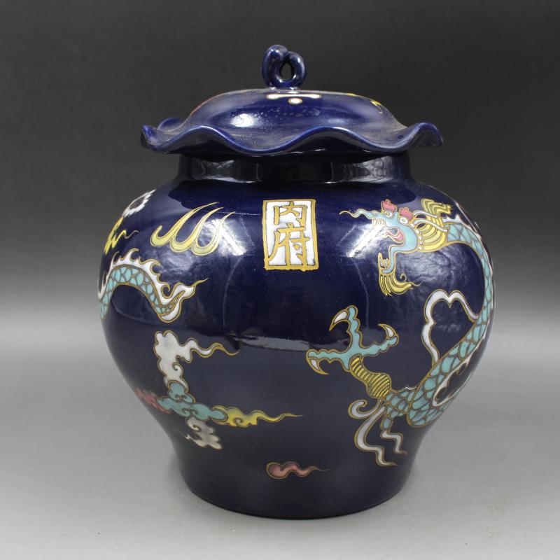 元祭藍內府琺華彩龍紋蓋罐 仿古老貨瓷器 家居擺件古董古玩收藏1入
