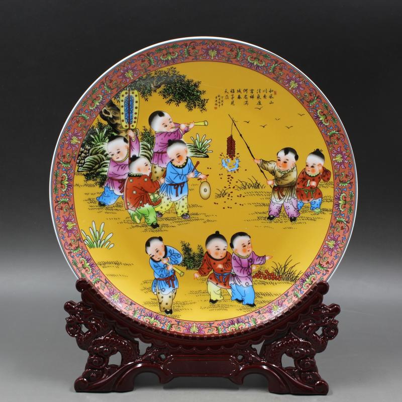 清乾隆粉彩嬰戲盤 仿古瓷器 家居復古裝飾擺件 觀賞古董古玩收藏1入