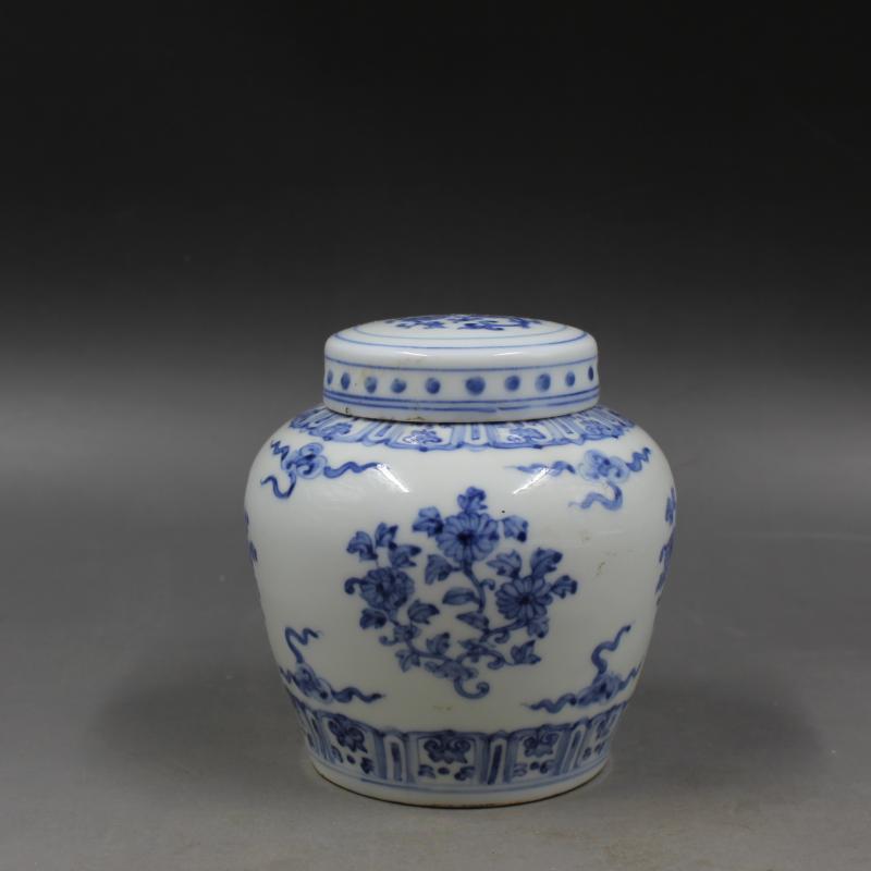大明成化年制青花折枝花紋天子罐 家居裝飾擺件 仿古瓷器茶葉罐1入