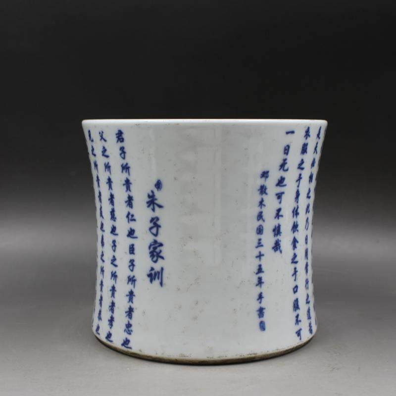 民國江西瓷業公司青花文字朱子家訓筆筒筆海文房瓷器擺件古玩收藏1入