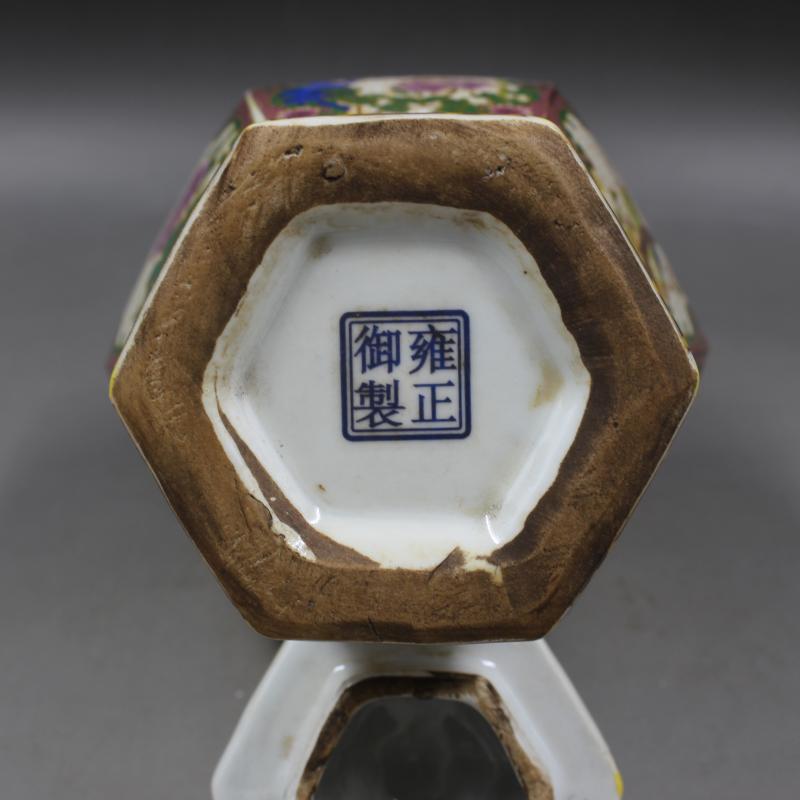 清雍正琺瑯彩六方花鳥將軍罐 仿古瓷器 家居復古擺件古董古玩收藏1入