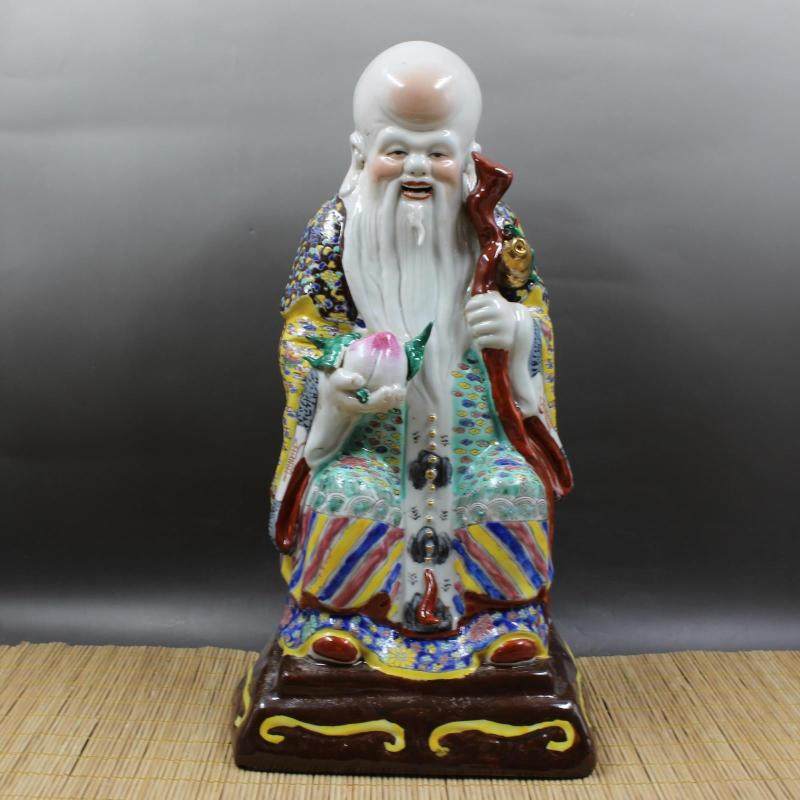 民國粉彩雕塑壽星像 手工仿古工藝老貨瓷器 古董古玩擺件收藏1入