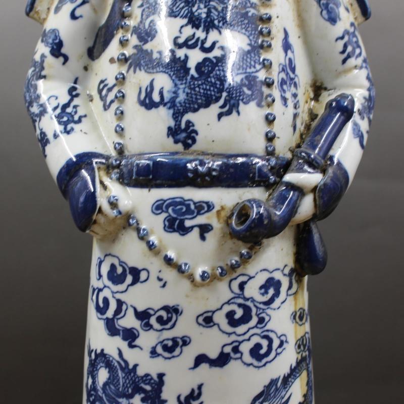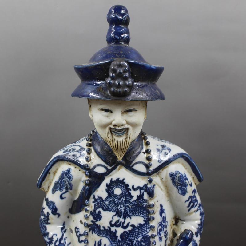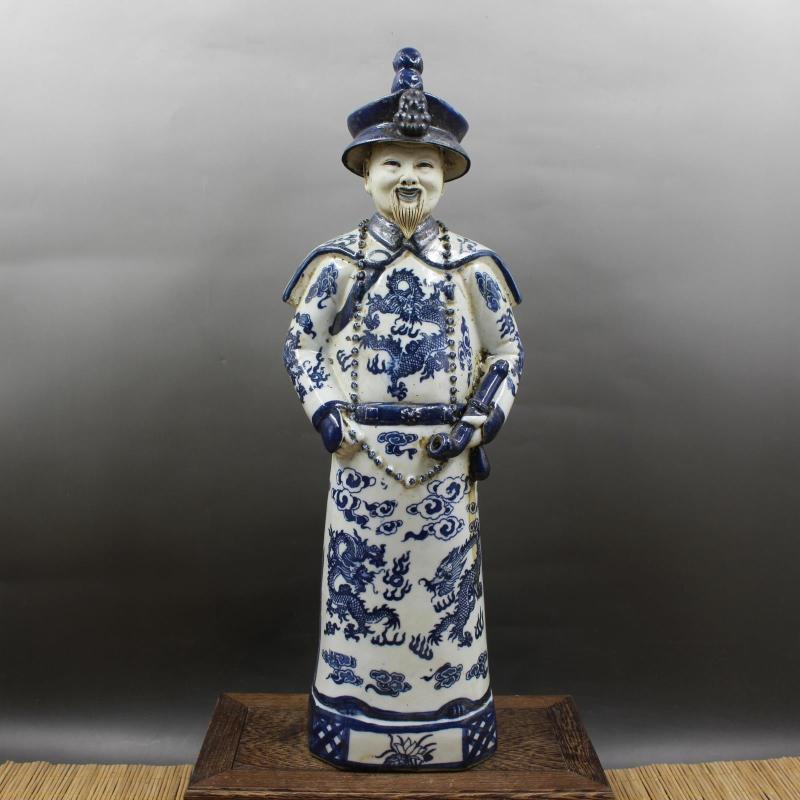 清光緒青花雕塑人物雍正像 仿古工藝老貨瓷器擺件 古董古玩收藏1入