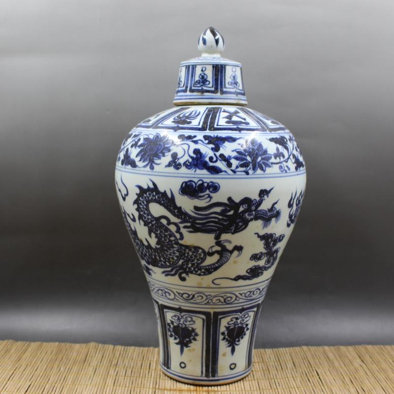 元青花八寶云龍紋帶蓋梅瓶 全手工仿古老貨瓷器擺件 古董古玩收藏1入