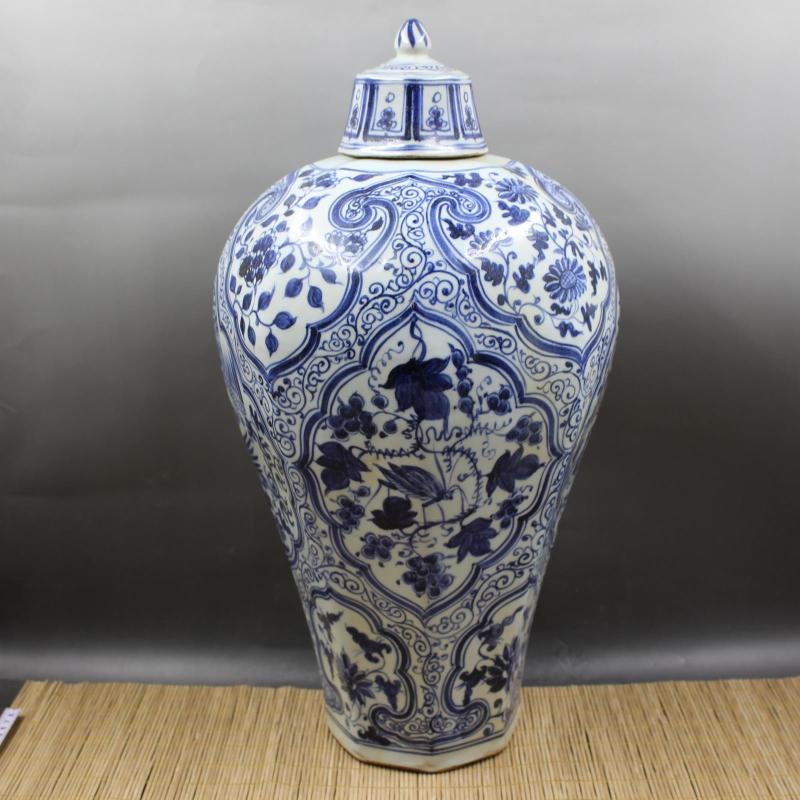 元青花滿工鳳凰花鳥梅瓶 全手工仿古老貨瓷器擺件 古玩古玩收藏1入