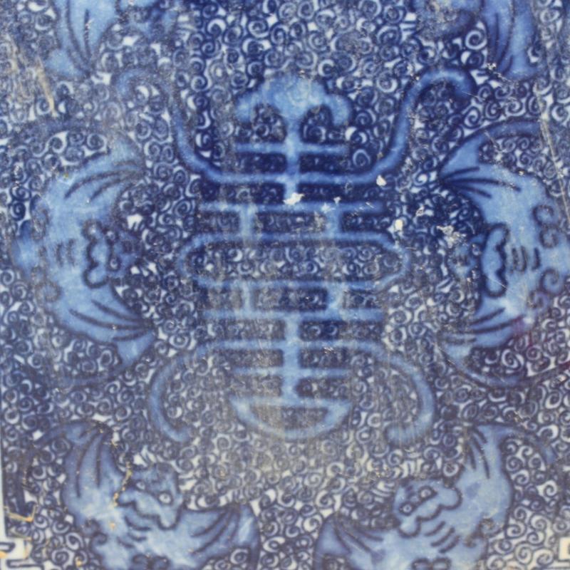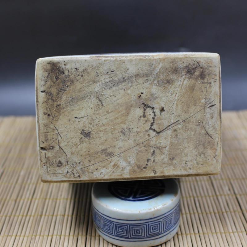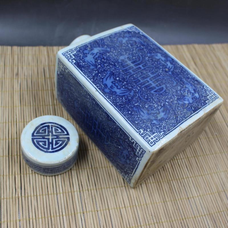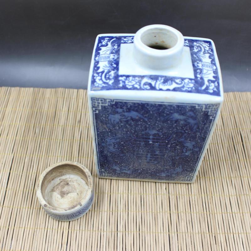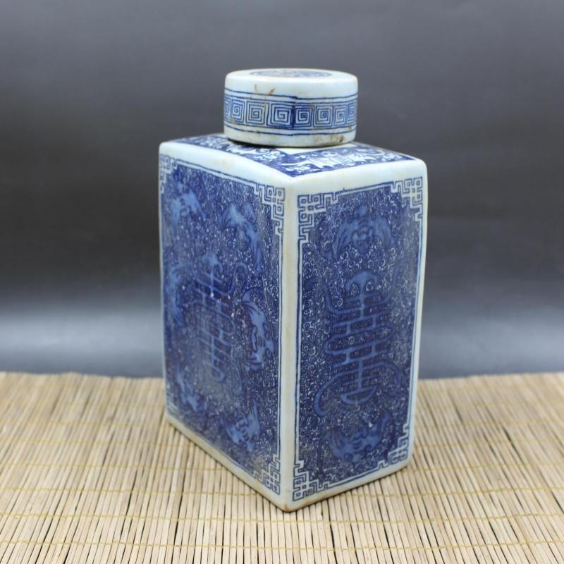 清康熙青花藍地福壽四方茶葉罐 仿古老貨出土瓷器擺件 古玩收藏1入