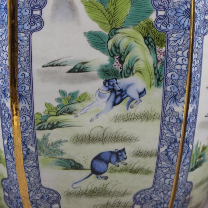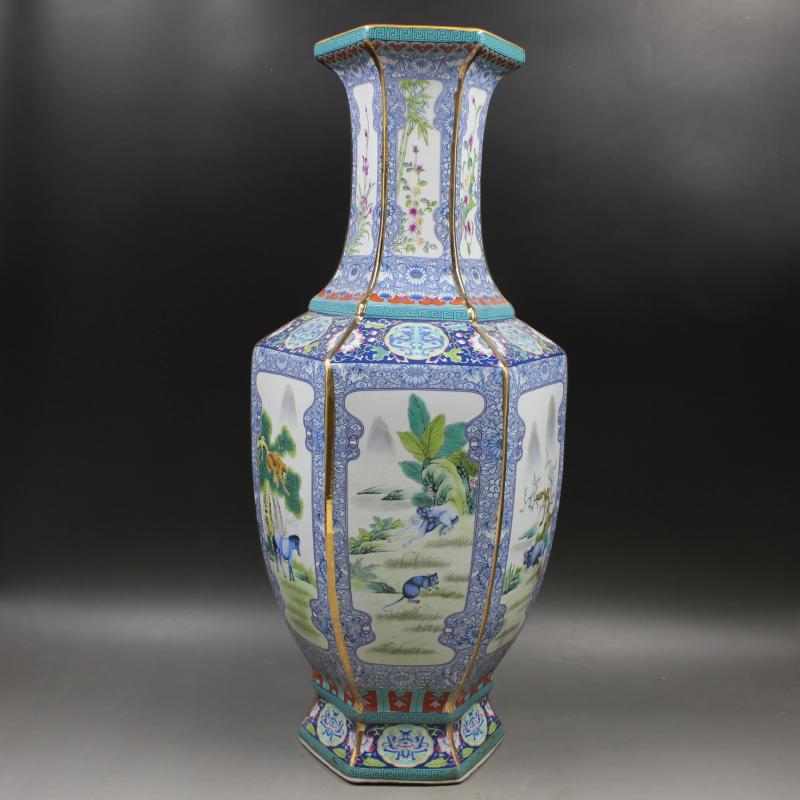 清乾隆款描金琺瑯彩十二生肖紋六方瓶 仿古復古家居擺件瓷器收藏1入