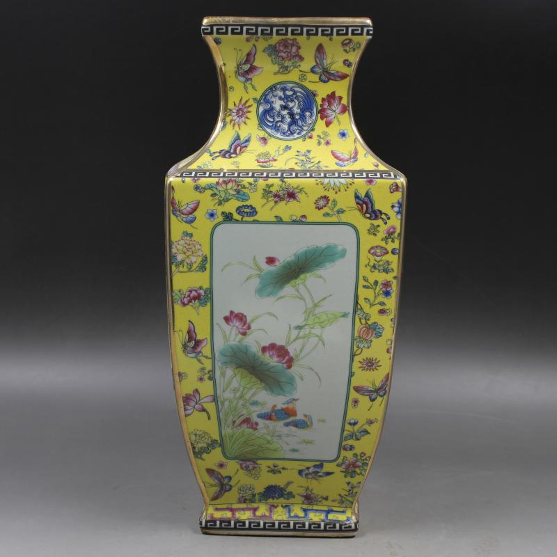 [2]清乾隆款描金琺瑯彩四季花鳥四方瓶 仿古復古家居擺件瓷器收藏1入