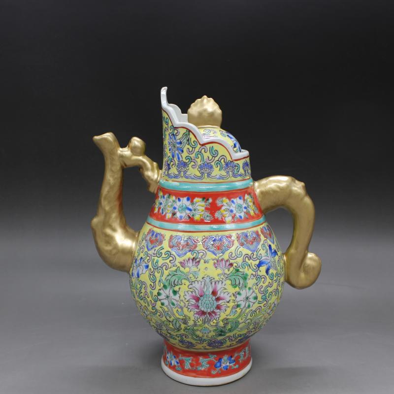 [2]清乾隆年制粉彩描金噴巴壺茶壺酒壺 仿古瓷器 家居擺件 古玩收藏1入