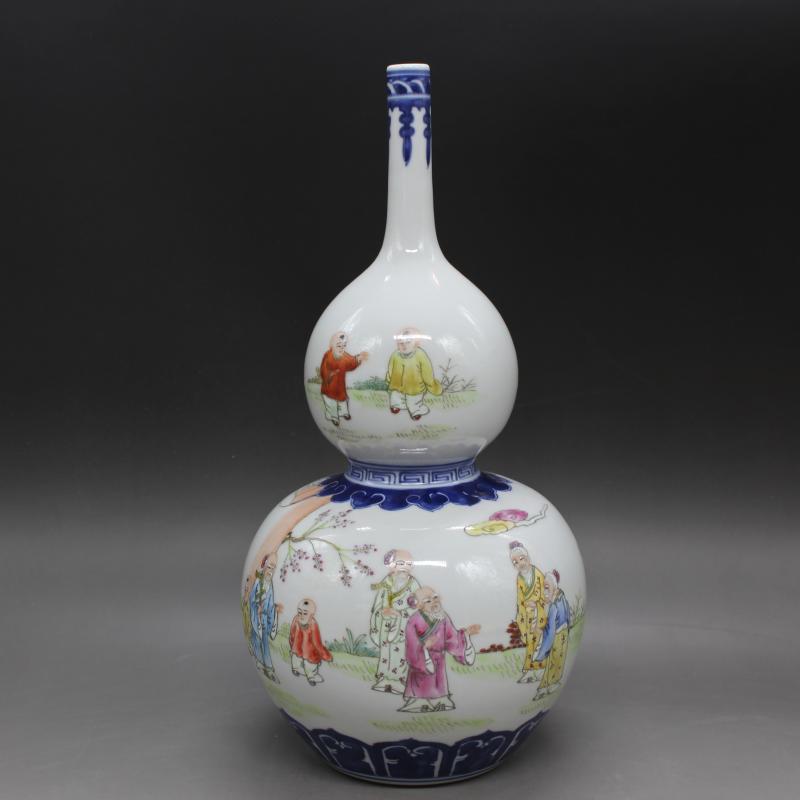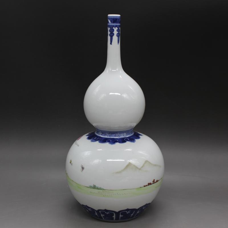 大清乾隆年制青花斗彩人物故事葫蘆瓶 手工仿古瓷器擺件古玩收藏1入