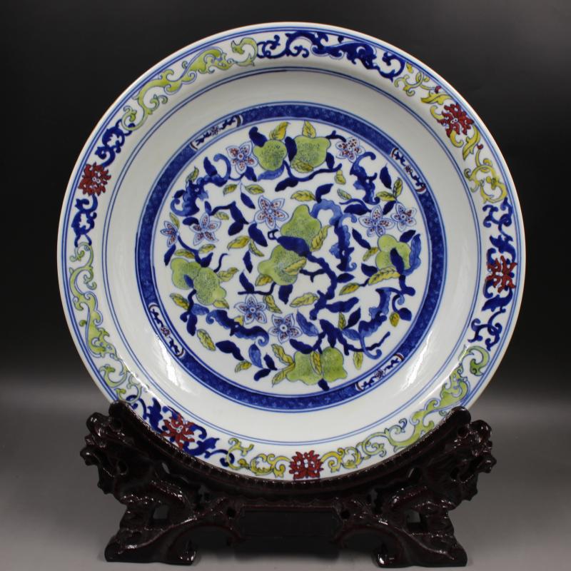 大清乾隆年制青花斗彩九桃大盤 手繪仿古瓷器 家居擺件 古玩收藏1入