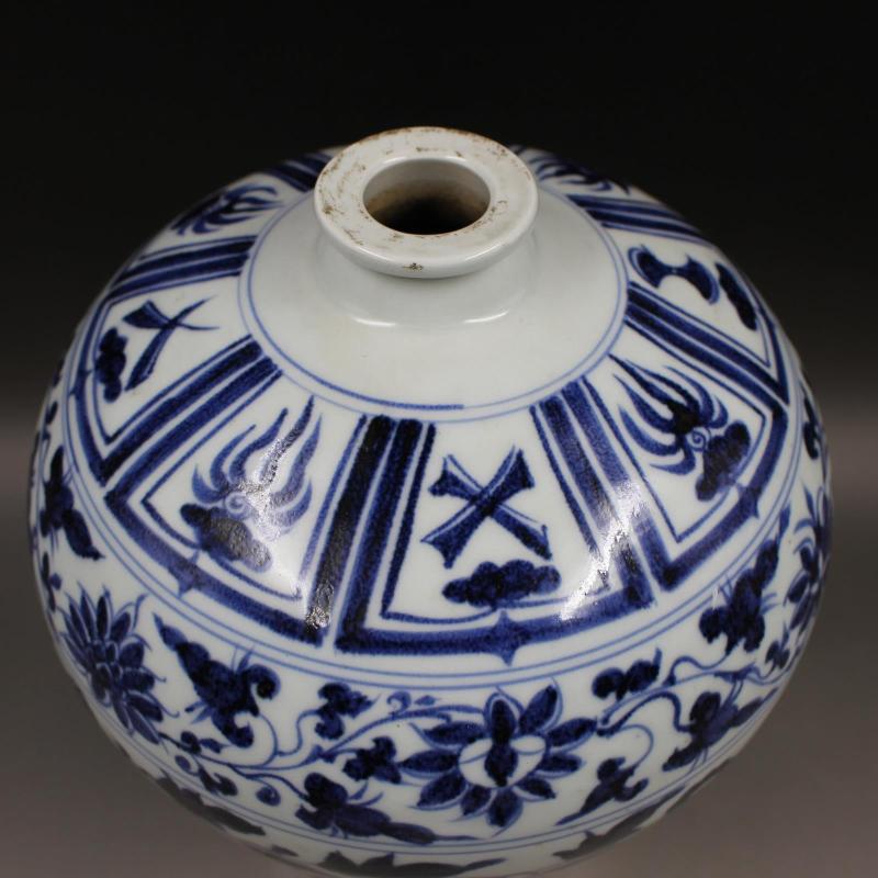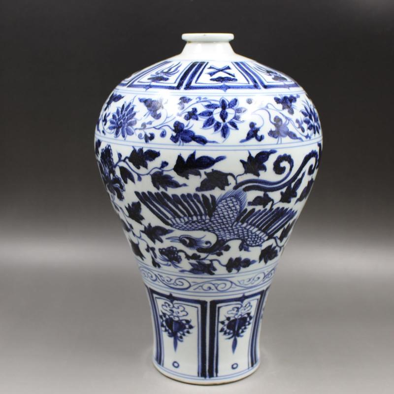 元青花穿花鳳紋梅瓶 全手工仿古出土老貨瓷器擺件 古董古玩收藏1入