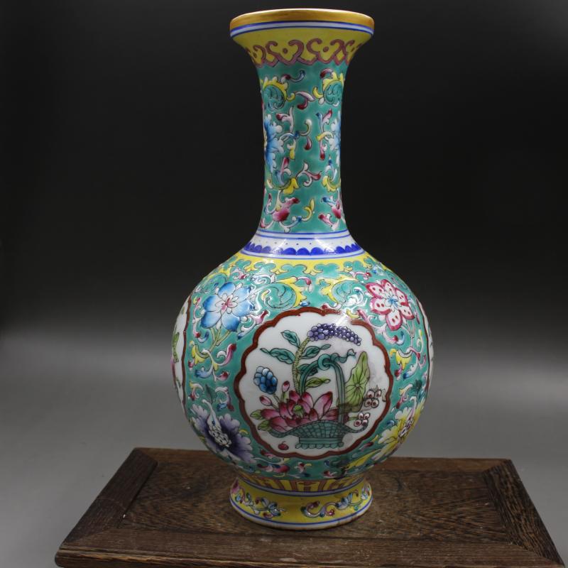 清乾隆琺瑯彩描金花紋賞瓶 粉彩家居擺件仿古粉彩瓷器 古董古玩1入