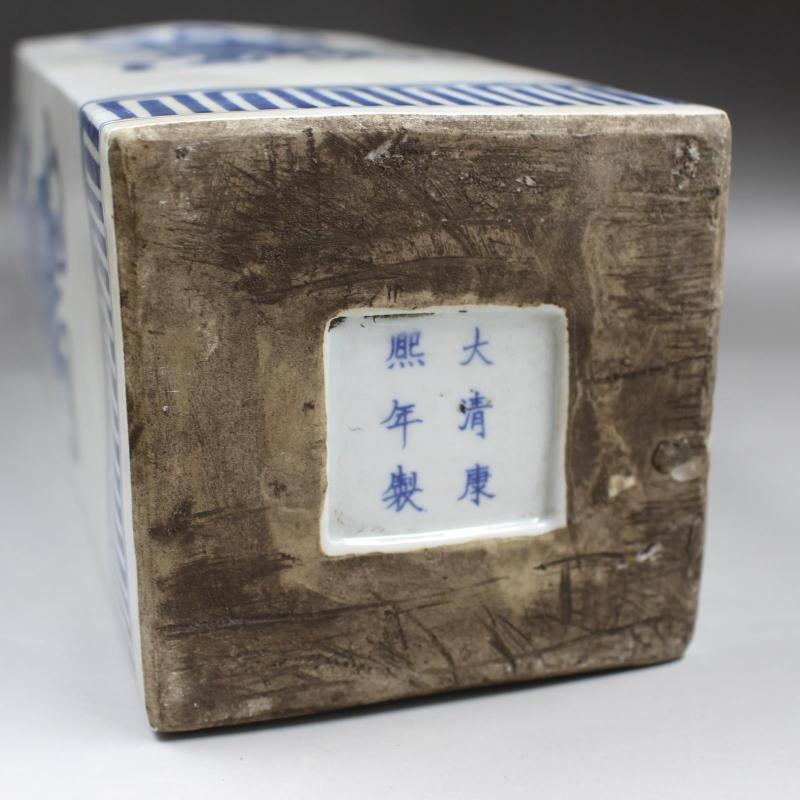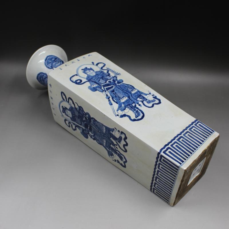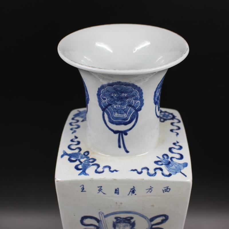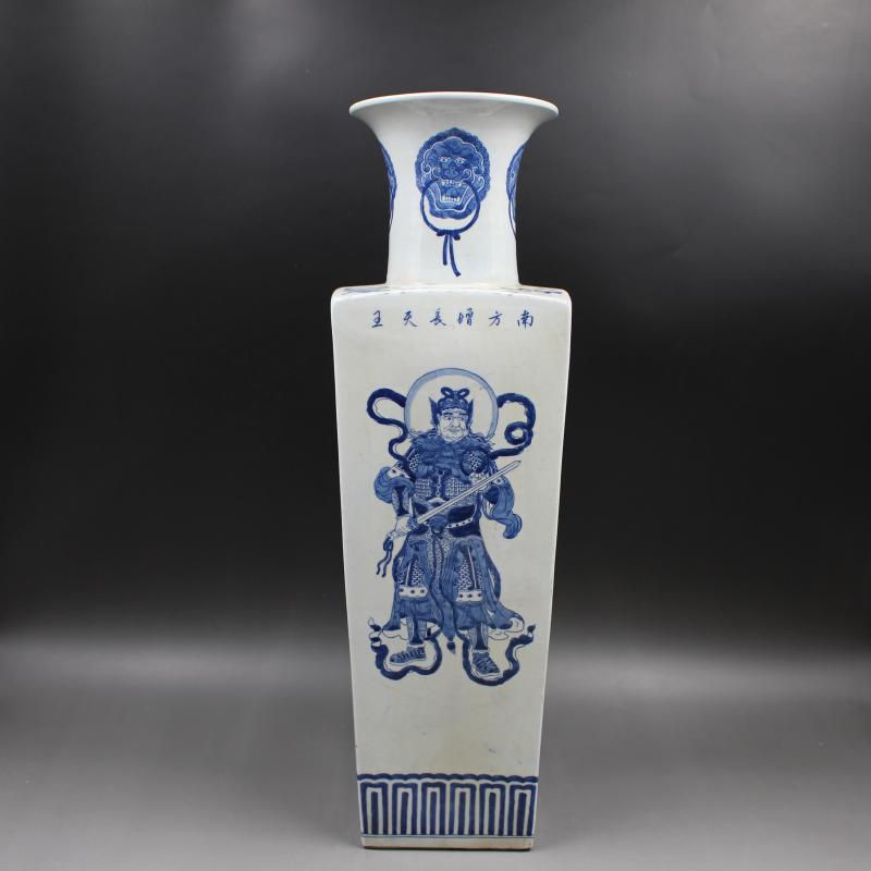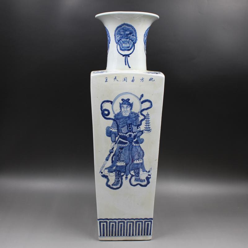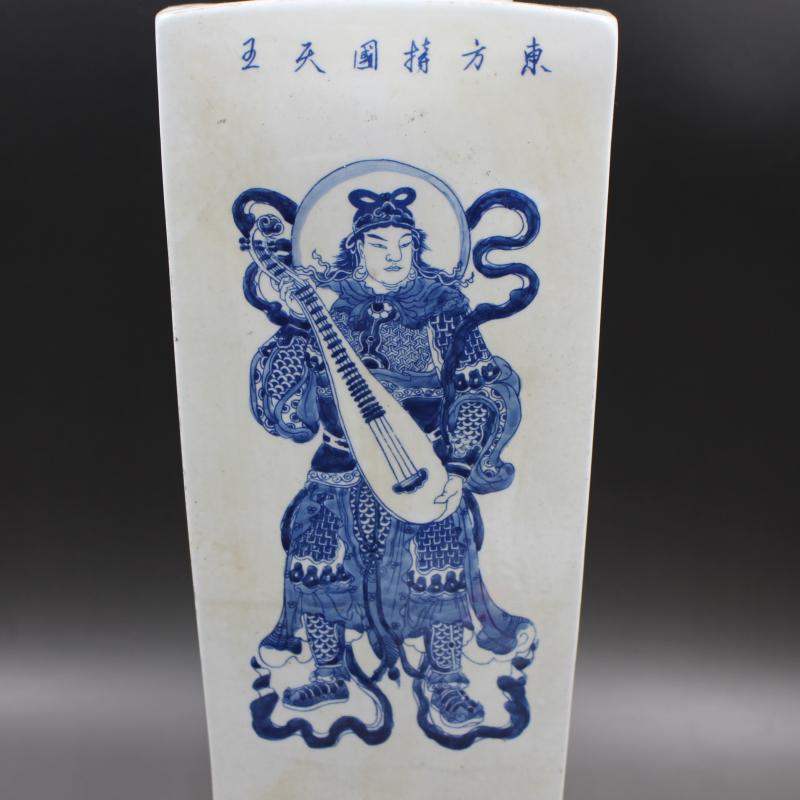 清康熙人物四大天王天圓地方瓶 手工仿古老貨瓷器擺件 古玩收藏1入