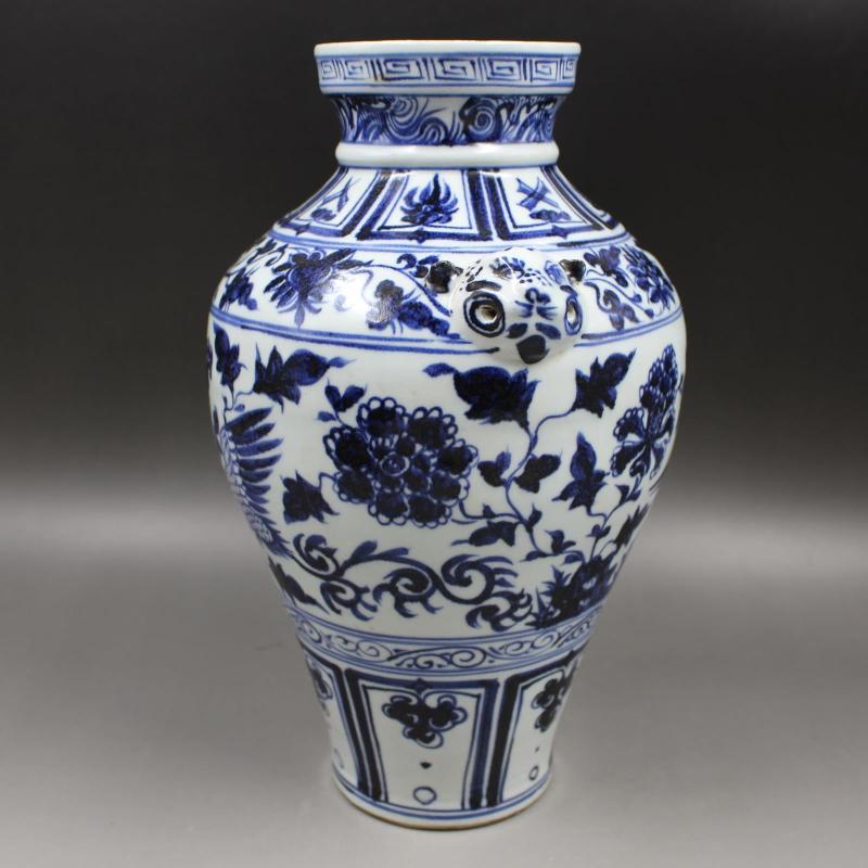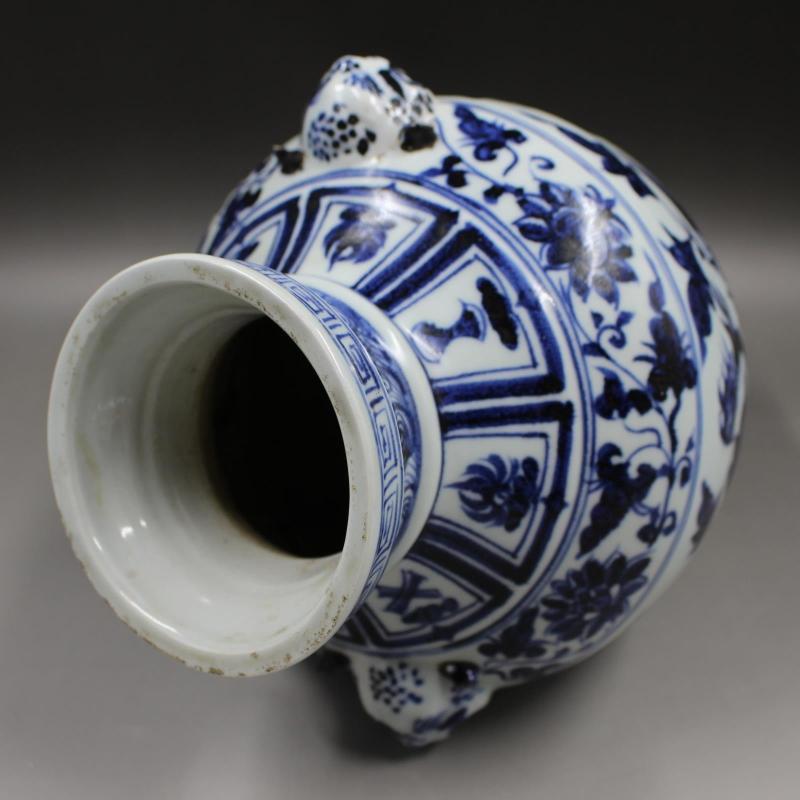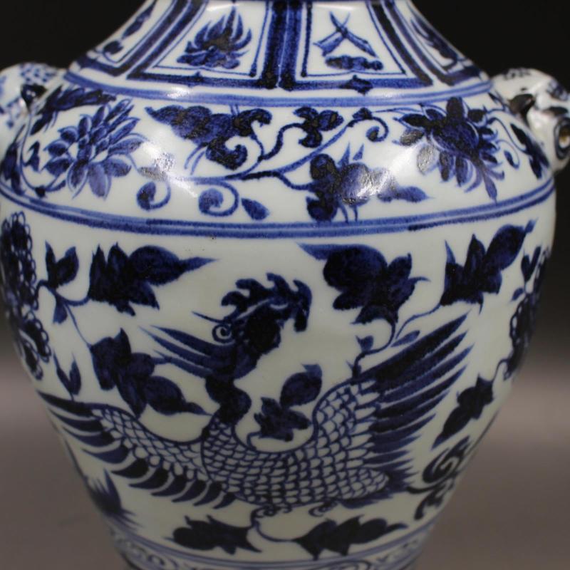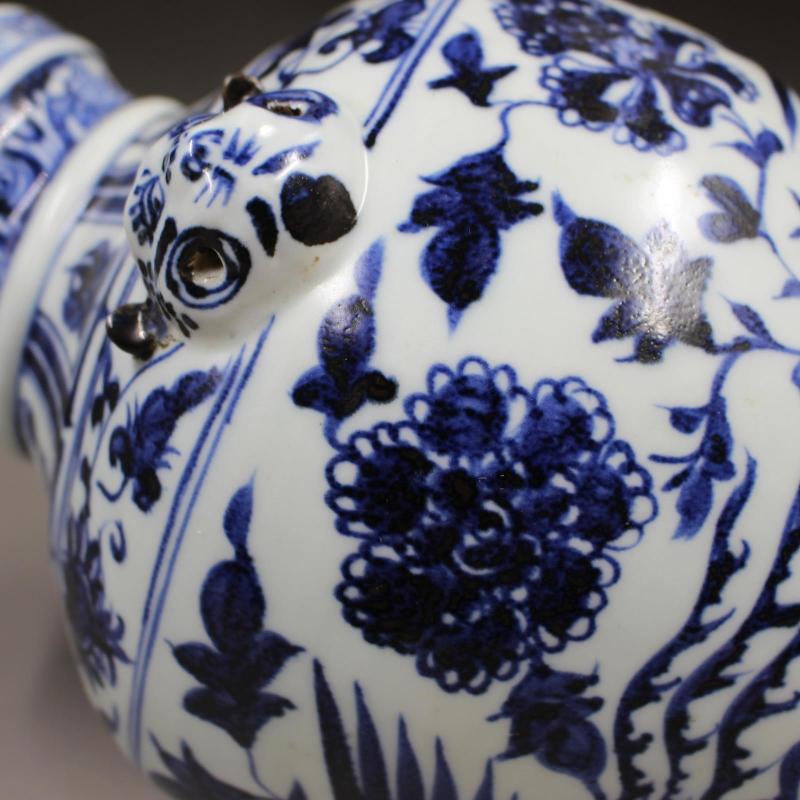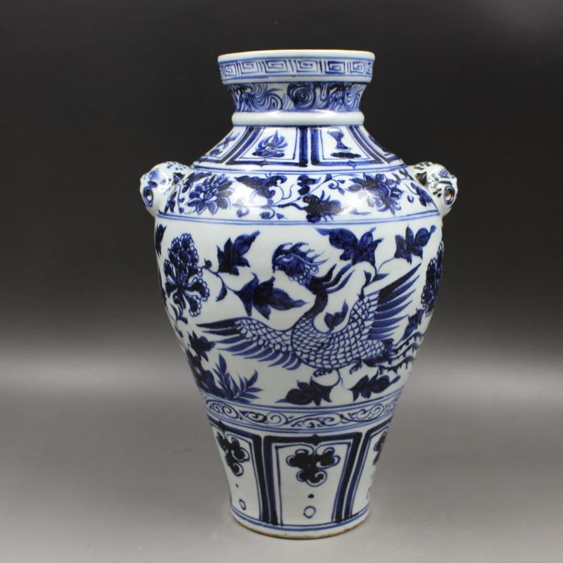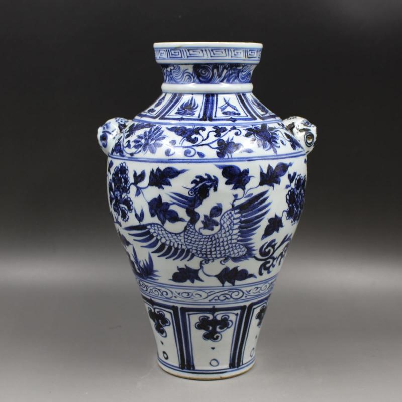 元青花穿花鳳紋虎頭罐 全手工仿古出土老貨瓷器擺件 古董古玩收藏1入