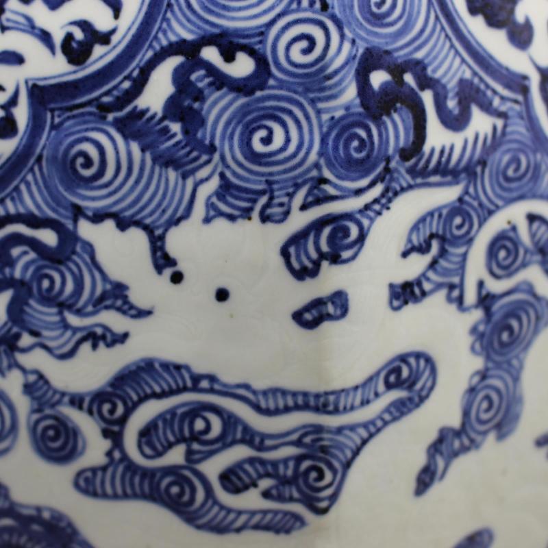 元青花藍地留白刻海水龍紋梅瓶 全手工仿古瓷器擺件 古董古玩收藏1入