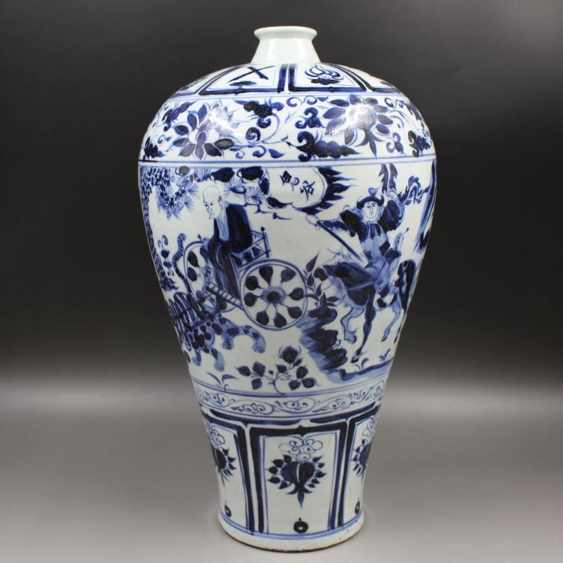 元青花人物鬼谷子下山紋梅瓶 手工仿古出土瓷器擺件 古董古玩收藏1入