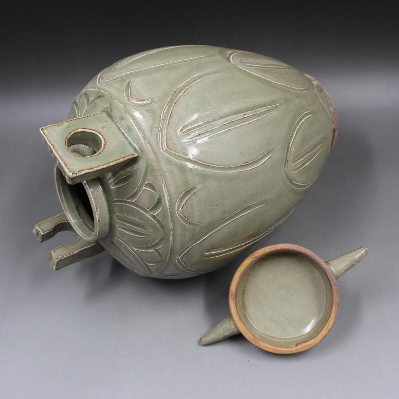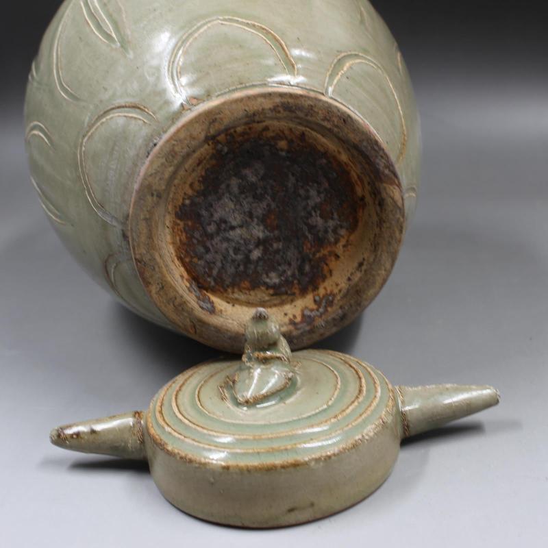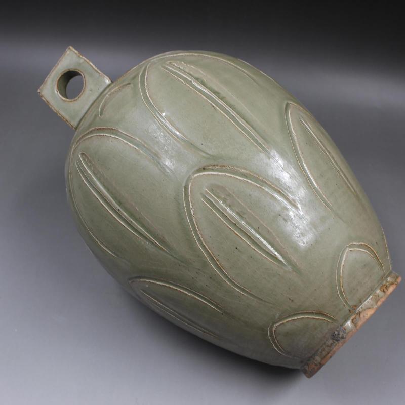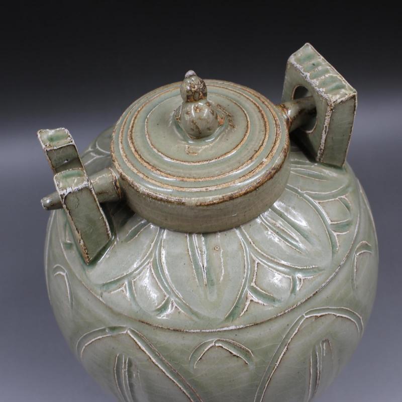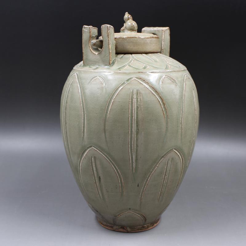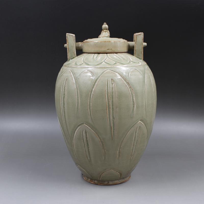 西晉越窯雕刻花瓣米罐錢罐 全手工仿古老貨瓷器擺件 古董古玩收藏1入
