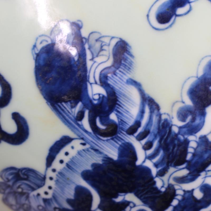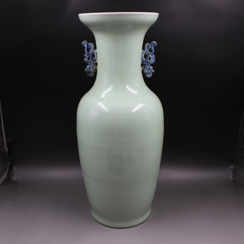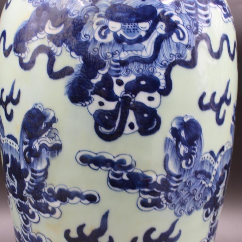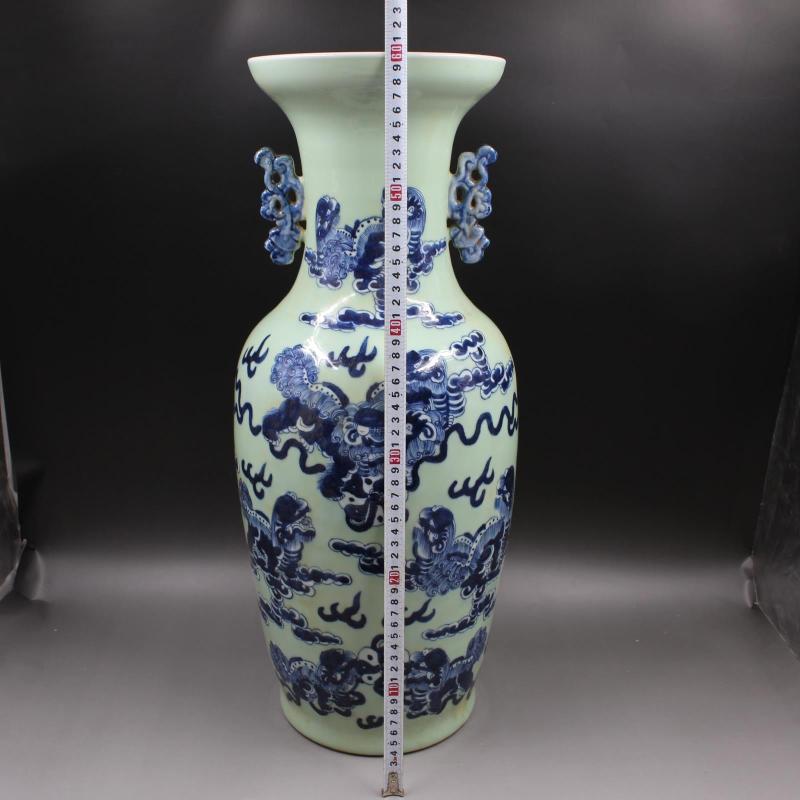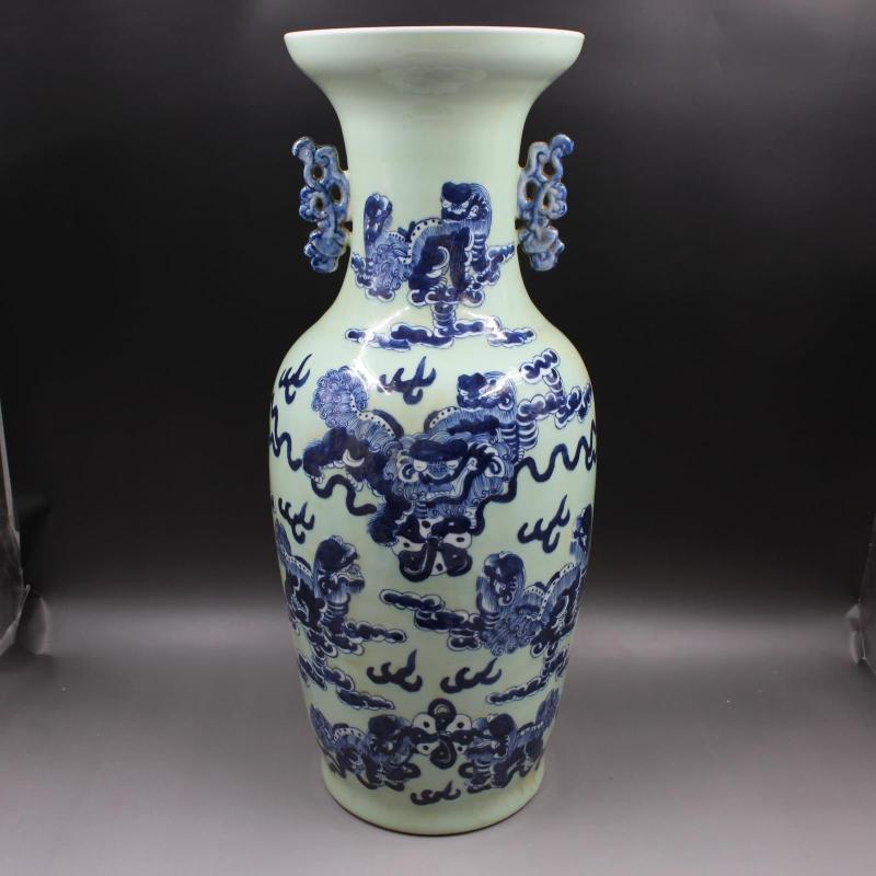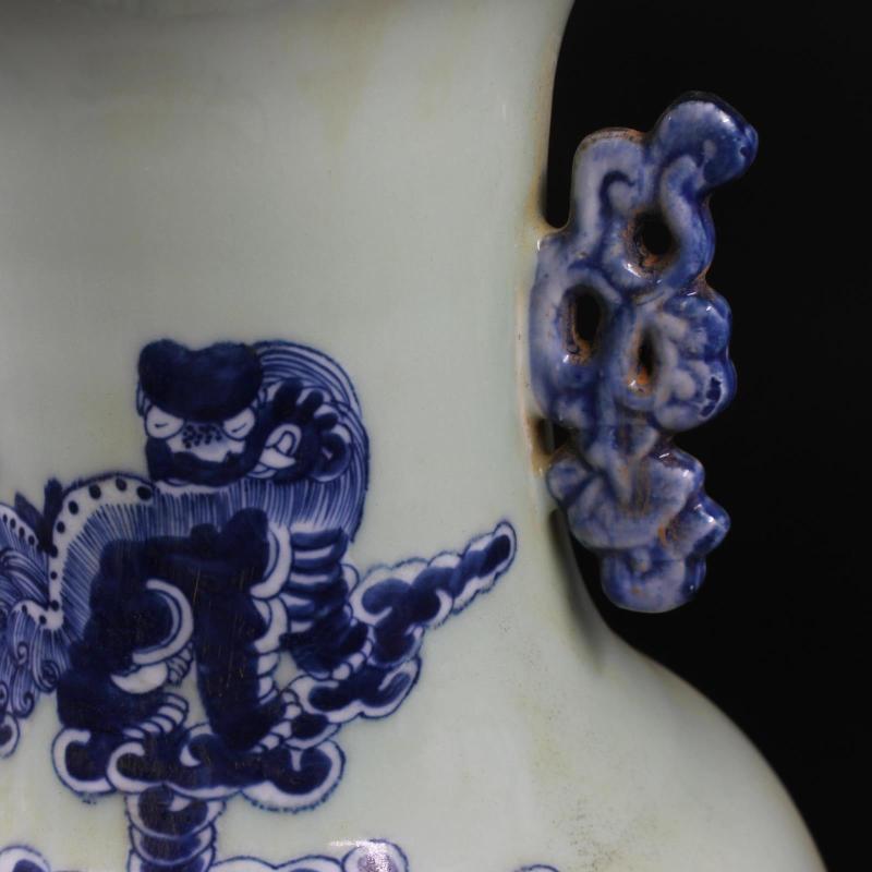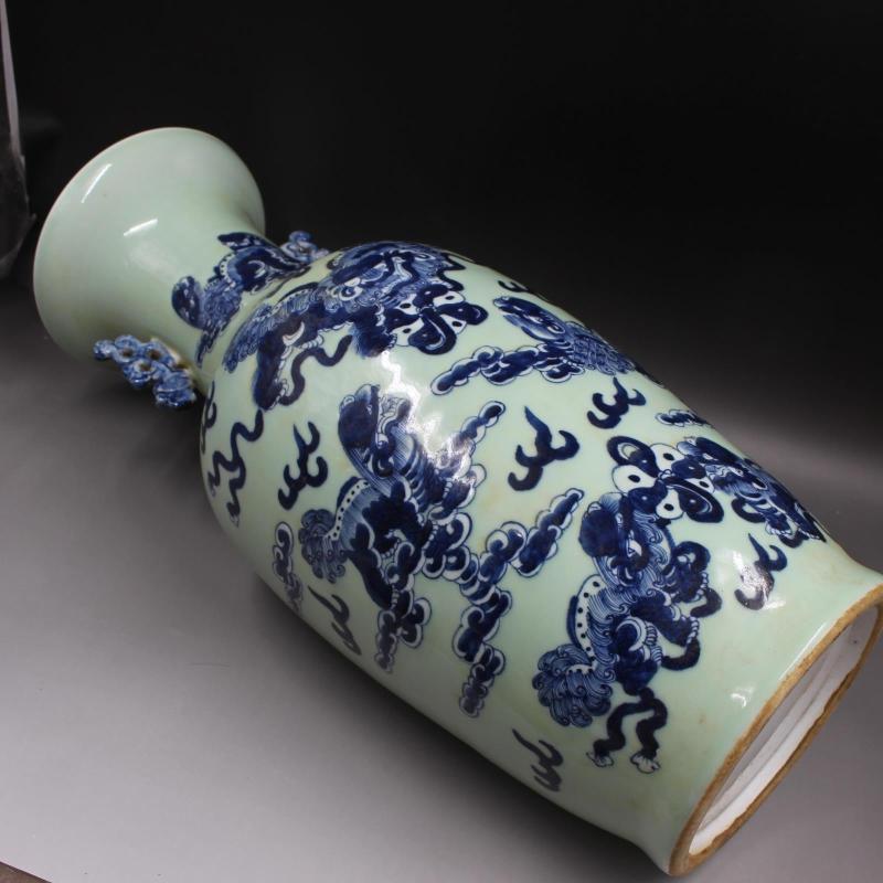清康熙豆青釉青花獅子紋蝶耳花瓶 手工仿古老貨瓷器擺件 古玩收藏1入