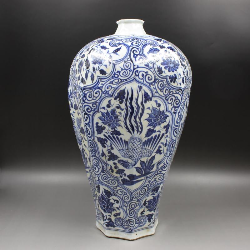 元青花滿工麒麟鳳紋梅瓶 手工仿古出土老貨瓷器擺件 古董古玩收藏1入