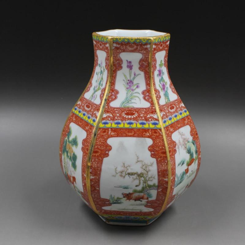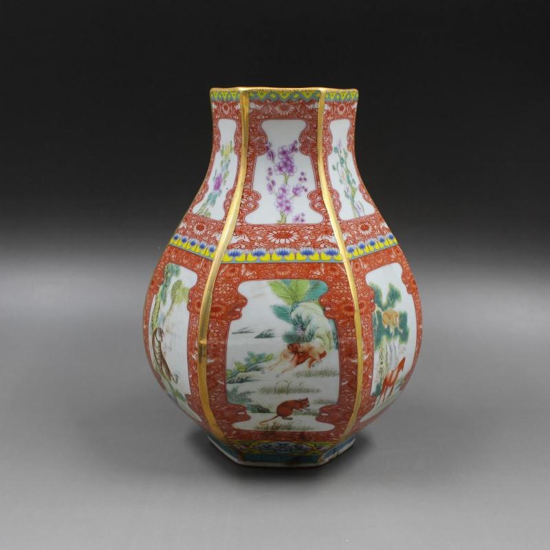 清乾隆年制描金琺瑯彩十二生肖福筒 仿古工藝瓷器擺件 古玩收藏1入