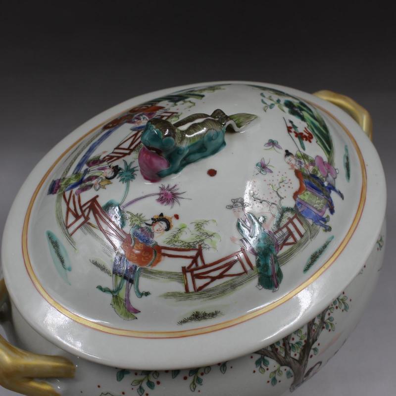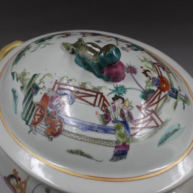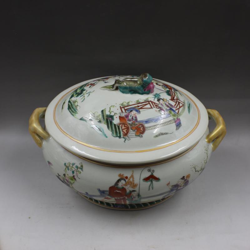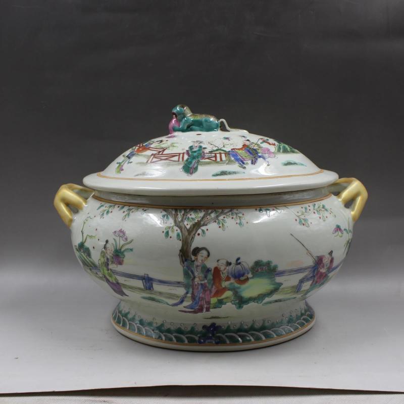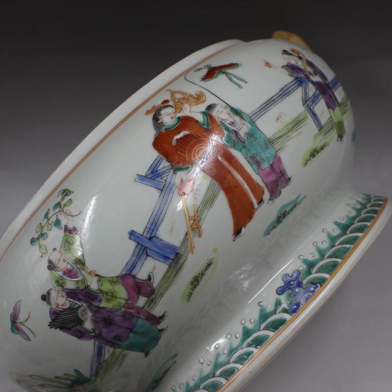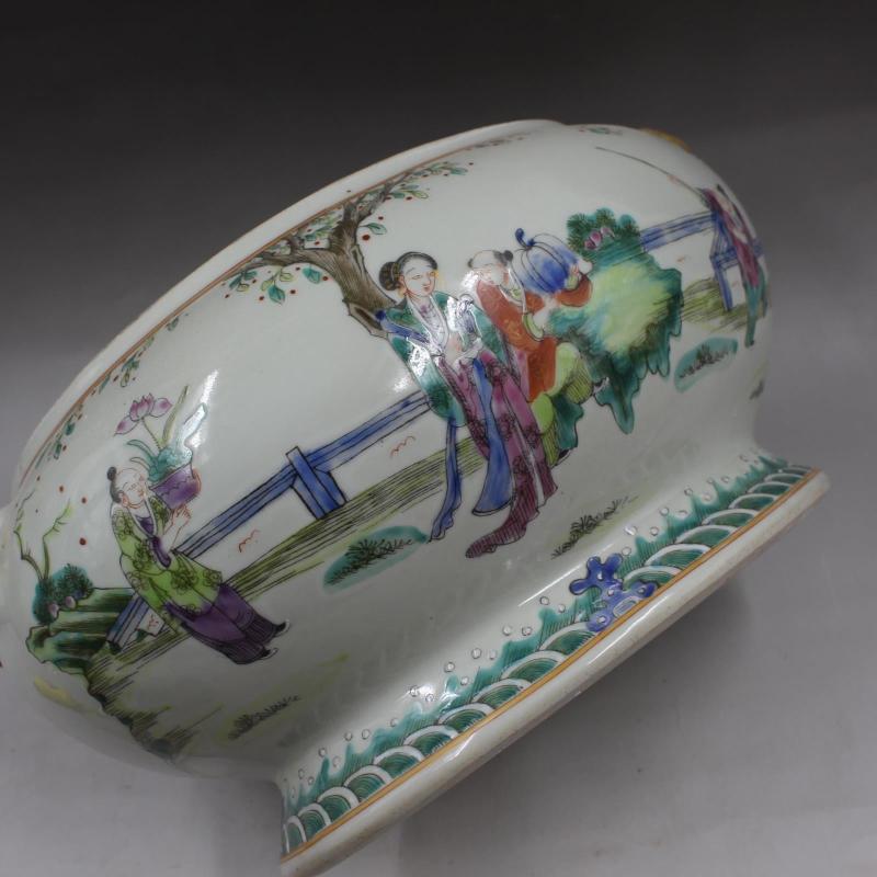 清乾隆年制粉彩人物故事缽 手繪仿古老貨瓷器擺件 古董古玩收藏1入