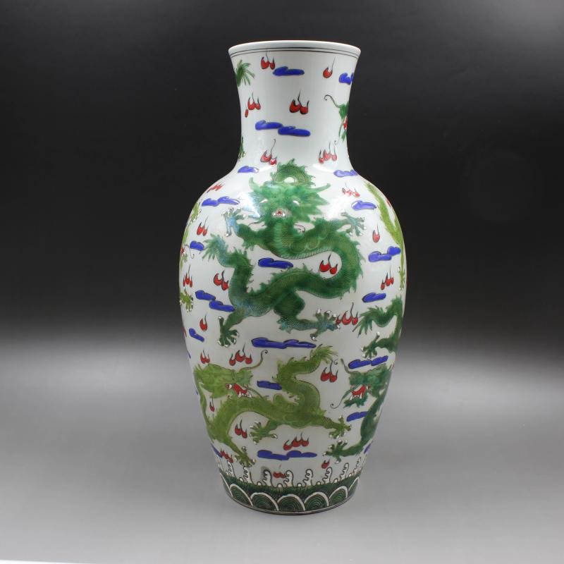 大清康熙年制五彩云龍紋觀音瓶 手工仿古瓷器擺件 古董老貨古玩1入