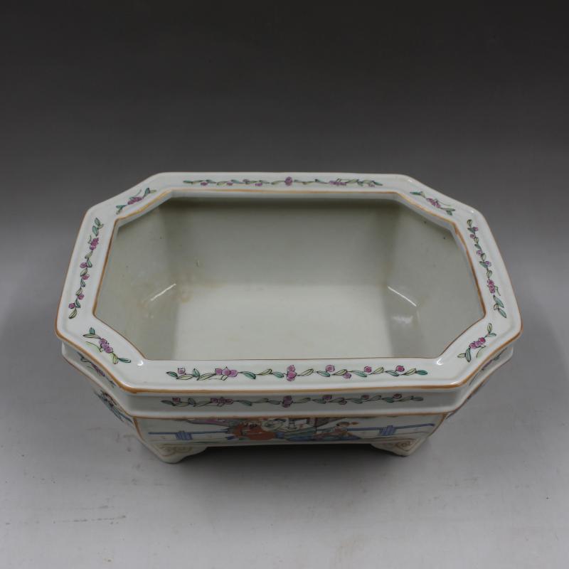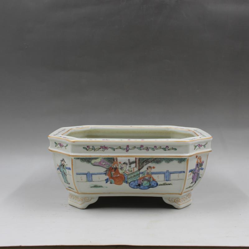 清乾隆年制粉彩人物故事水仙盆水洗手繪仿古老貨瓷器擺件古玩收藏1入