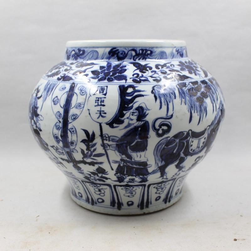 元青花人物故事周亞夫大罐 手工仿古出土老貨瓷器擺件 古董收藏1入