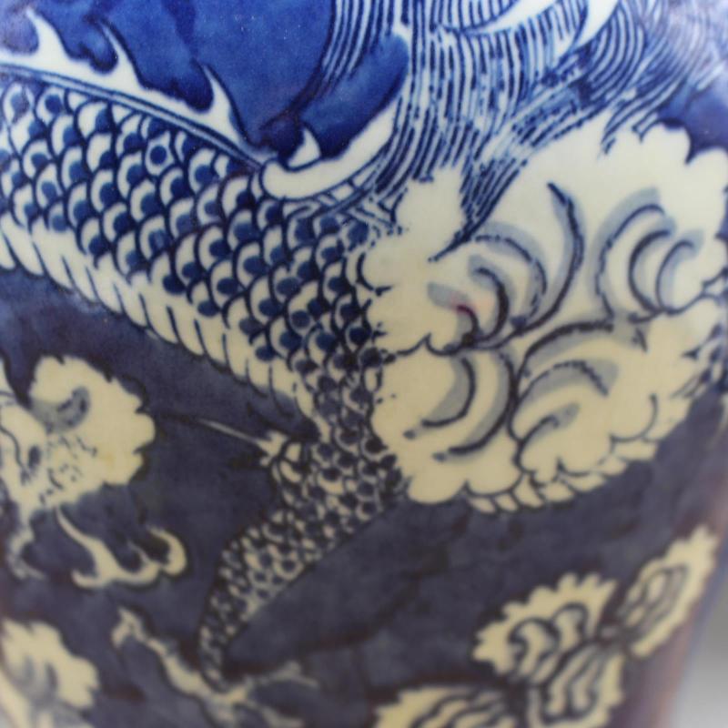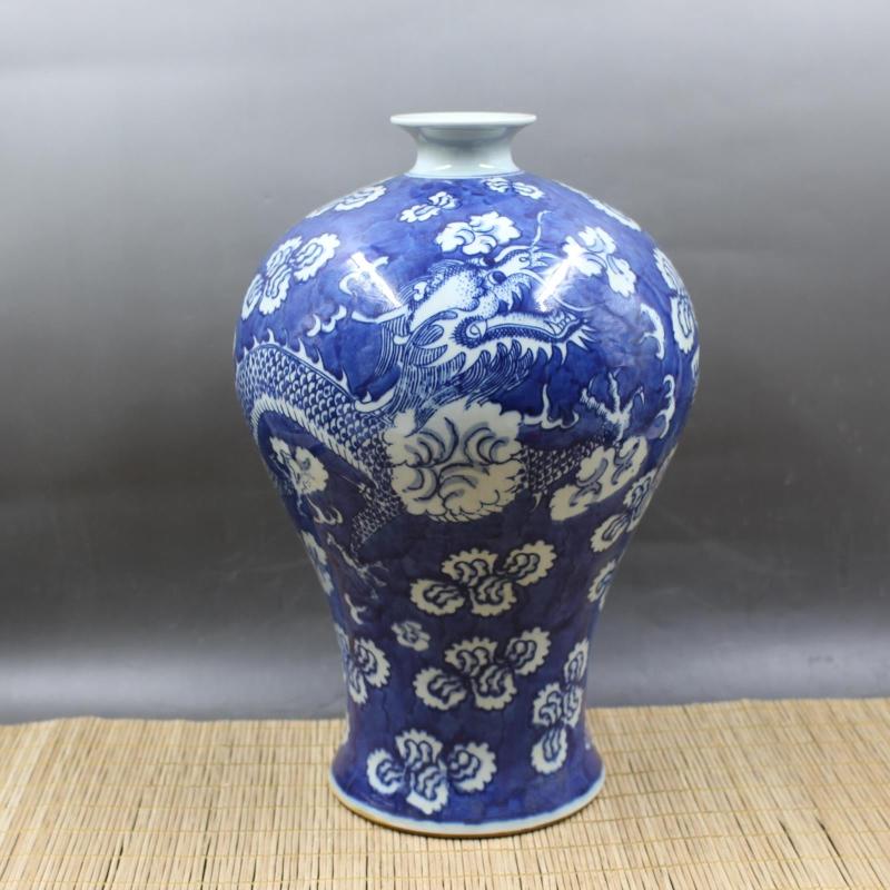 清康熙青花藍地白花穿花龍紋梅瓶 手工仿古老貨瓷器擺件 古董古玩1入