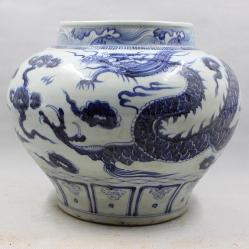 元青花海水云龍紋大罐 手工仿古出土老貨館藏瓷器擺件 古董收藏1入