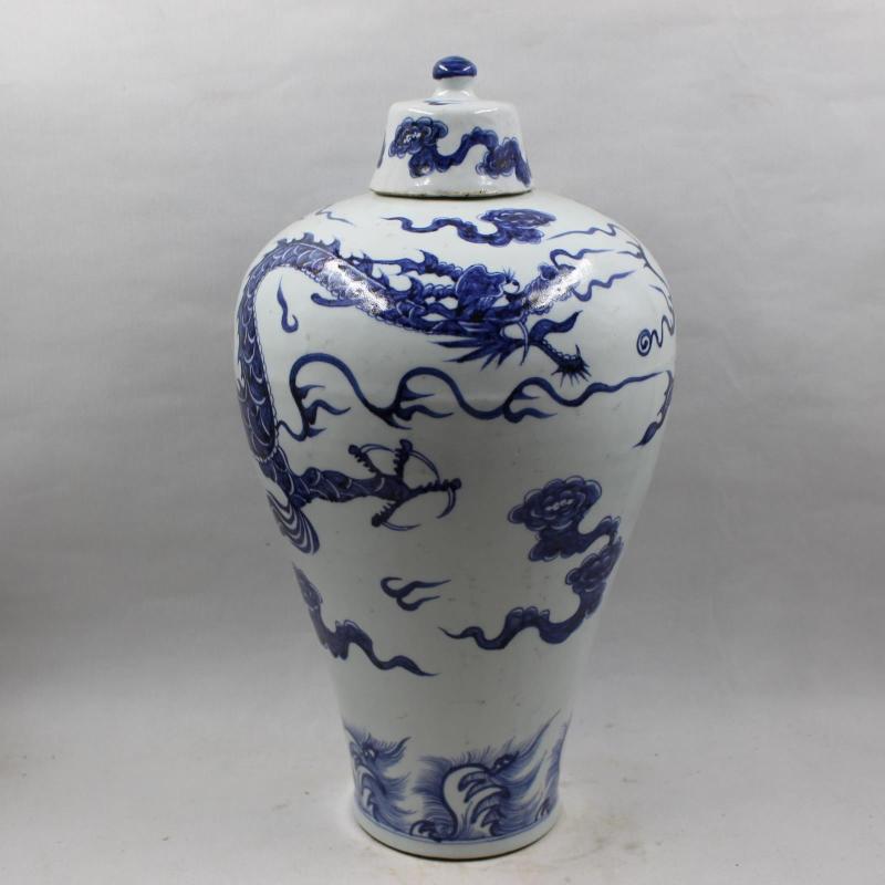 元青花云龍紋梅瓶 手工仿古館藏出土瓷器 家居擺件 古董古玩收藏1入