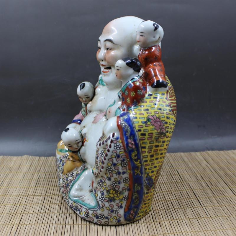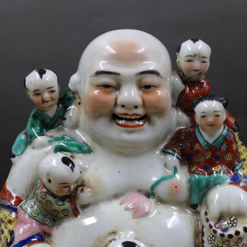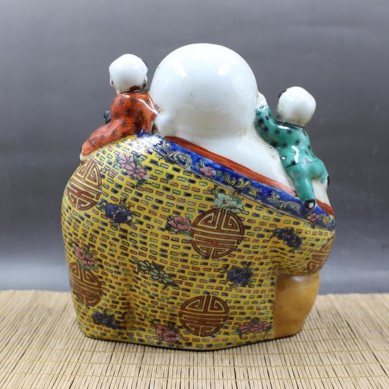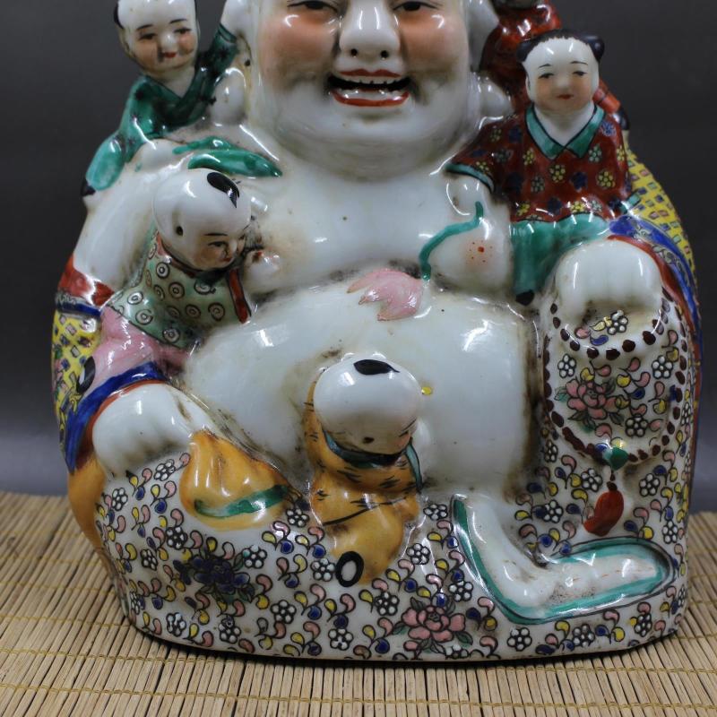 清光緒粉彩雕塑五福童子彌勒佛手工擺件收藏 民間老貨瓷器古玩1入