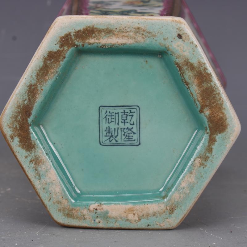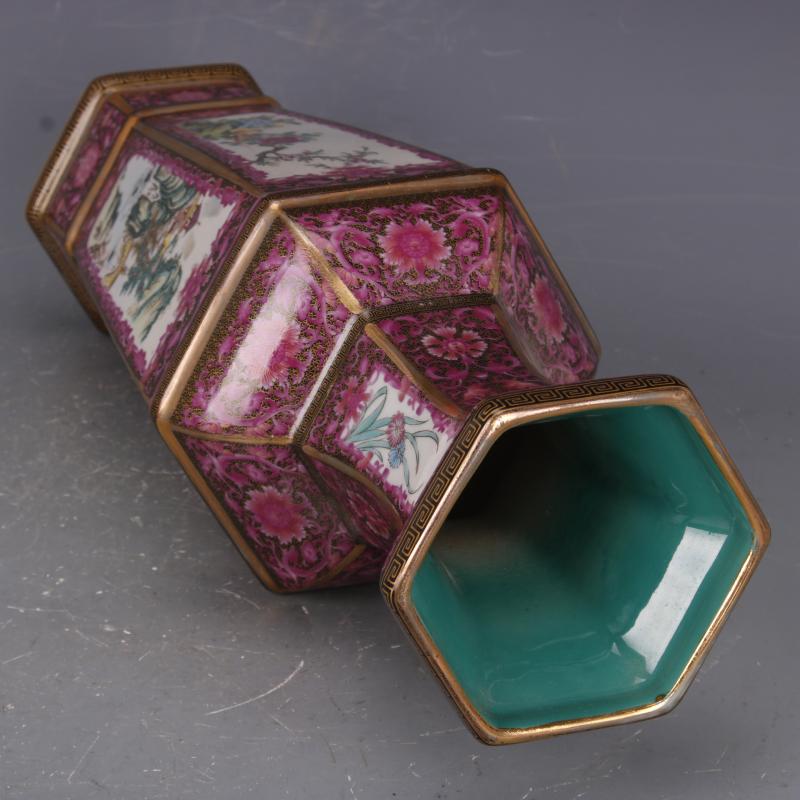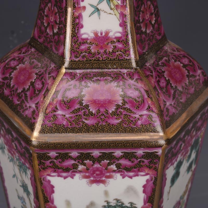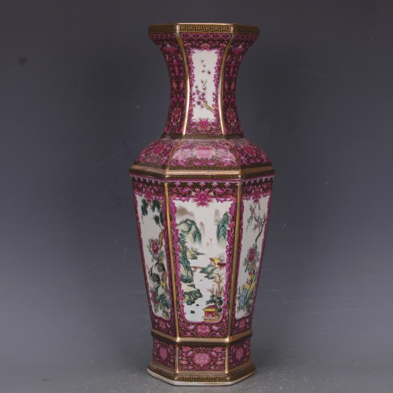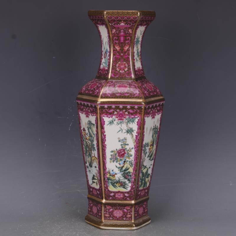 清乾隆描金琺瑯彩爬花花鳥六方瓶仿古家居中式古玩擺件瓷器收藏1入