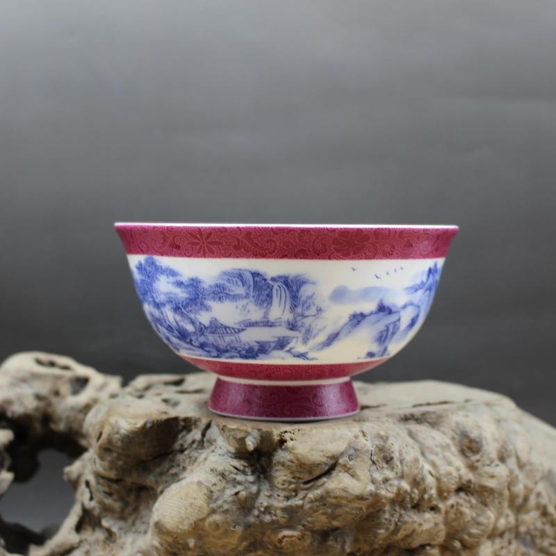 清乾隆年制飄花青花人物山水碗 仿古工藝擺件瓷器 古董古玩收藏1入