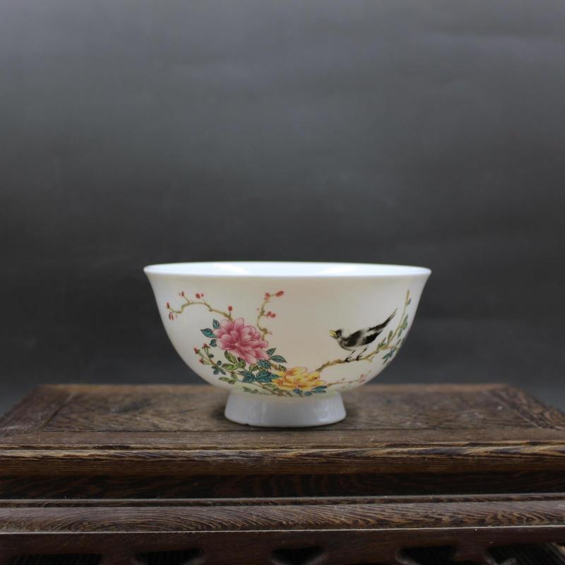 大清乾隆年制粉彩牡丹花鳥薄胎碗 仿古工藝擺件瓷器 古董古玩收藏1入