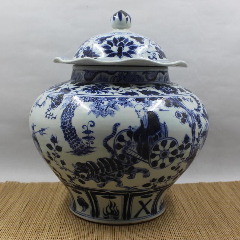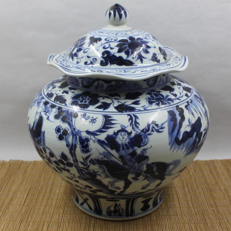 元青花人物故事鬼谷子下山帶蓋大罐手繪仿古出土瓷器擺件古玩收藏1入