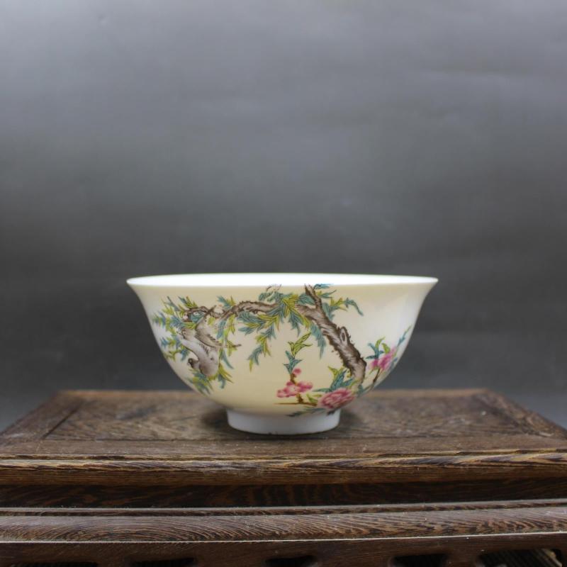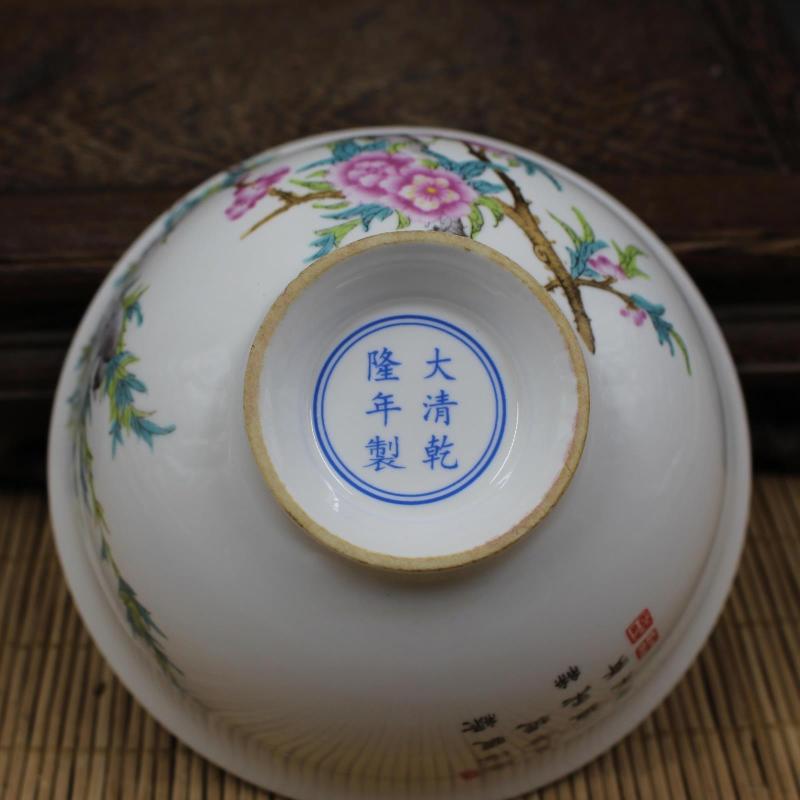 大清乾隆年制粉桃花花鳥紋碗 仿古工藝擺件瓷器 精品古董古玩收藏1入