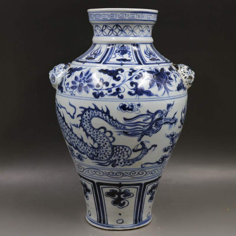 元青花云龍紋獸頭罐全手工仿古工藝老貨瓷器家居擺件古董古玩收藏1入