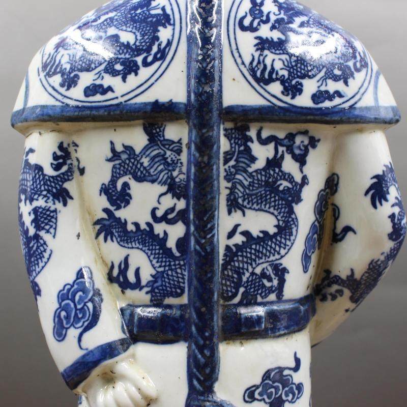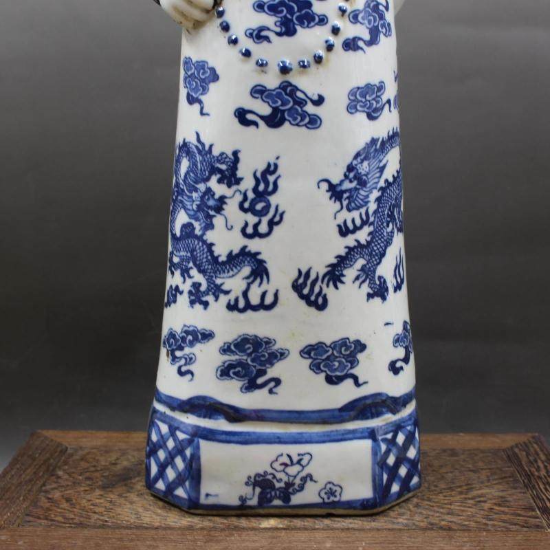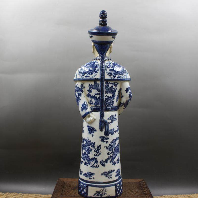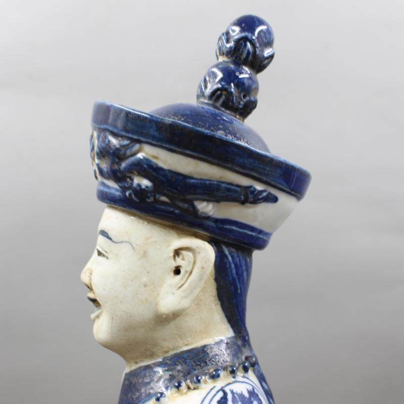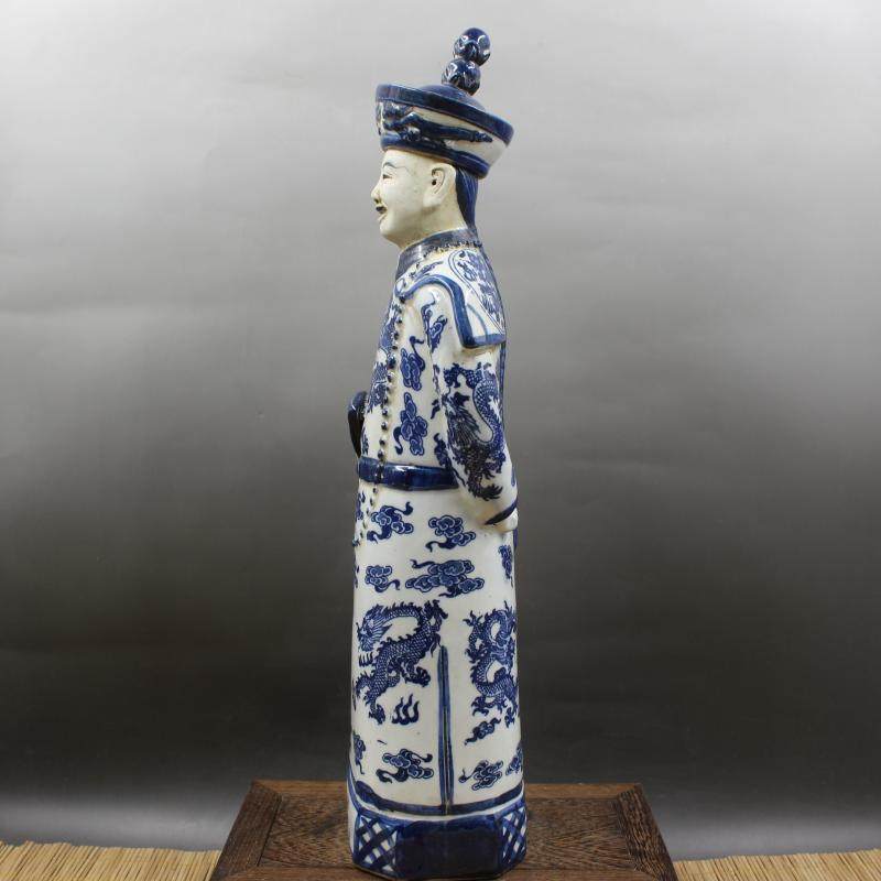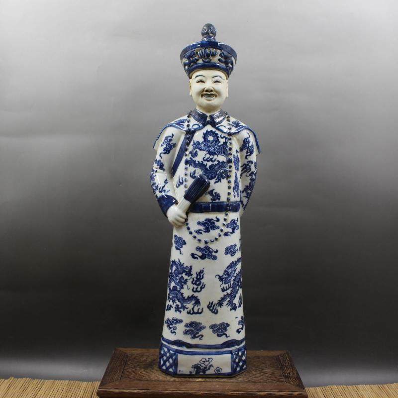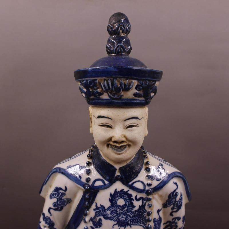民國青花雕塑人物乾隆像 仿古工藝老貨瓷器擺件古董古玩收藏1入