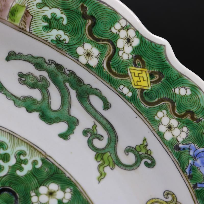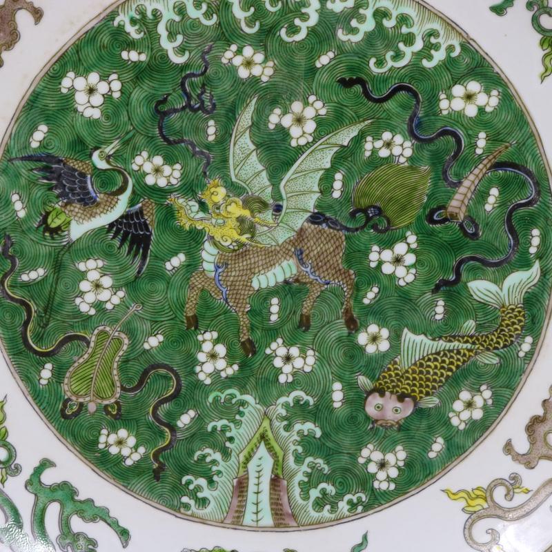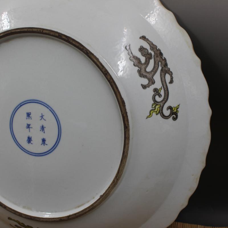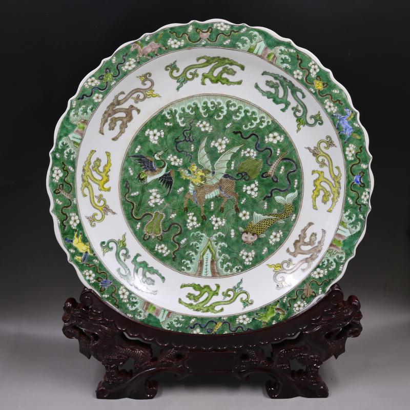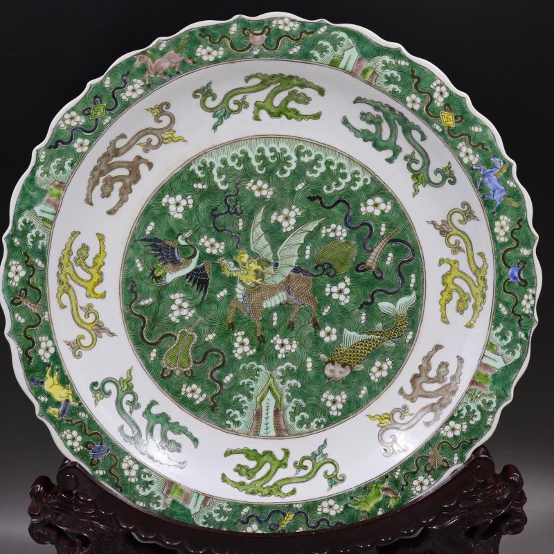 大清康熙年制粉彩八寶水麒麟紋大盤仿古老貨瓷器擺件古董古玩收藏1入