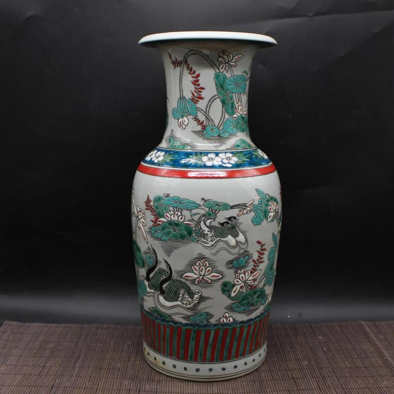 清雍正五彩荷花鴛鴦大肚觀音瓶 民間老貨收藏擺件 仿古瓷器古玩1入