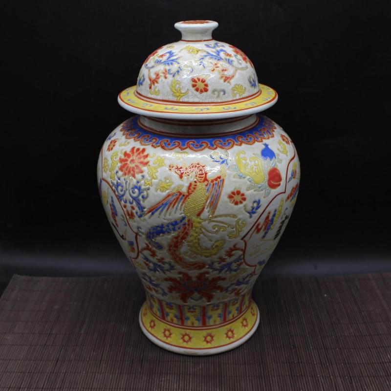 清乾隆年制粉彩賀壽將軍罐 仿古出土老貨瓷器擺件 古董古玩收藏1入
