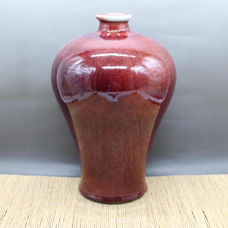 清雍正全手工窯變梅瓶 仿古瓷器 家居擺件 老貨古董古玩收藏1入