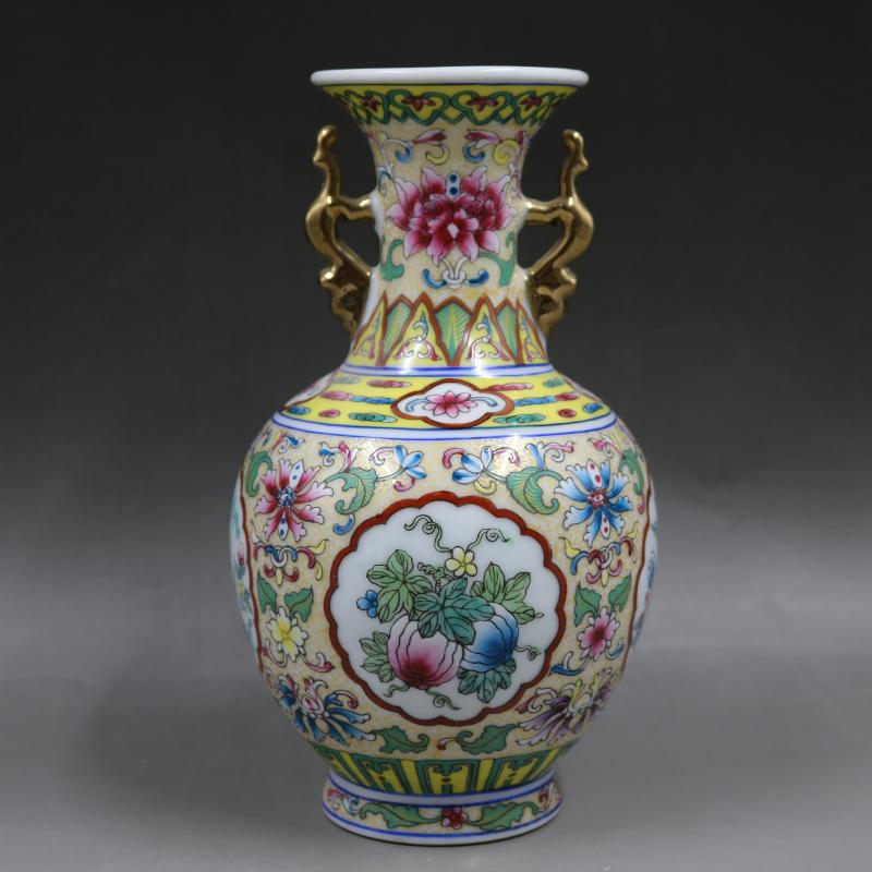 大清乾隆描金粉彩四季花紋賞瓶家居仿古裝飾瓷器擺件古董古玩收藏1入