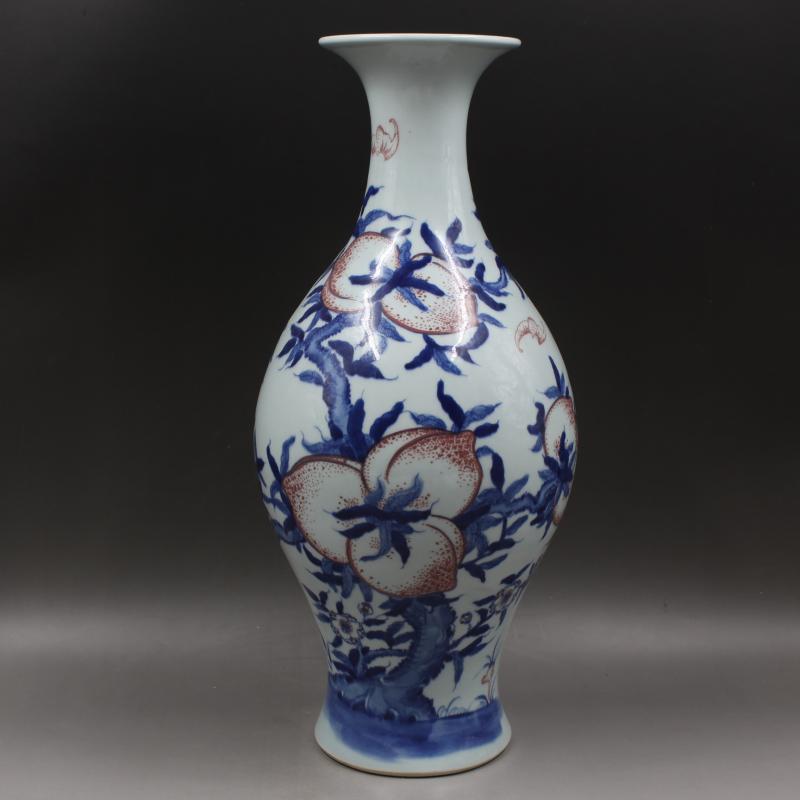大清康熙年制青花釉里紅九桃紋橄欖瓶仿古瓷器古董古玩擺件收藏1入