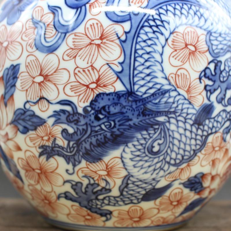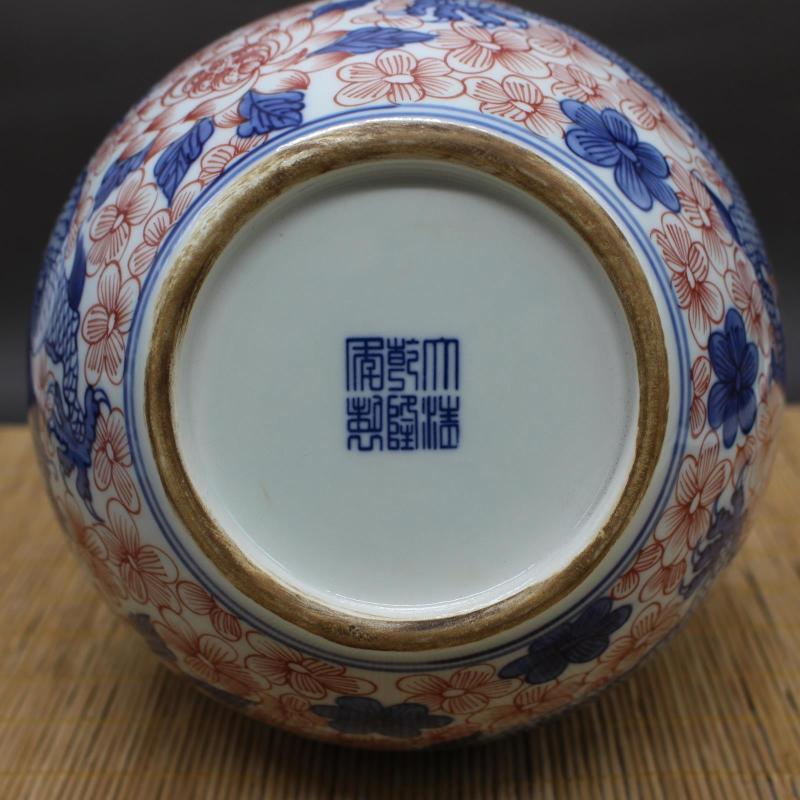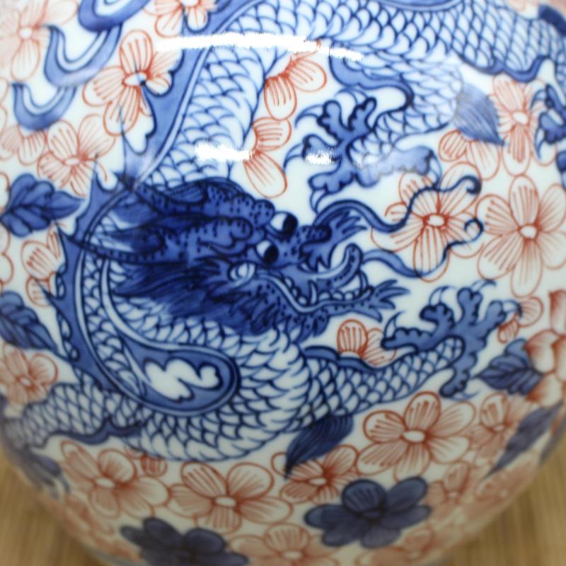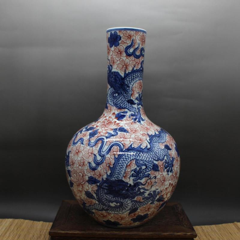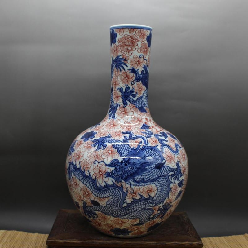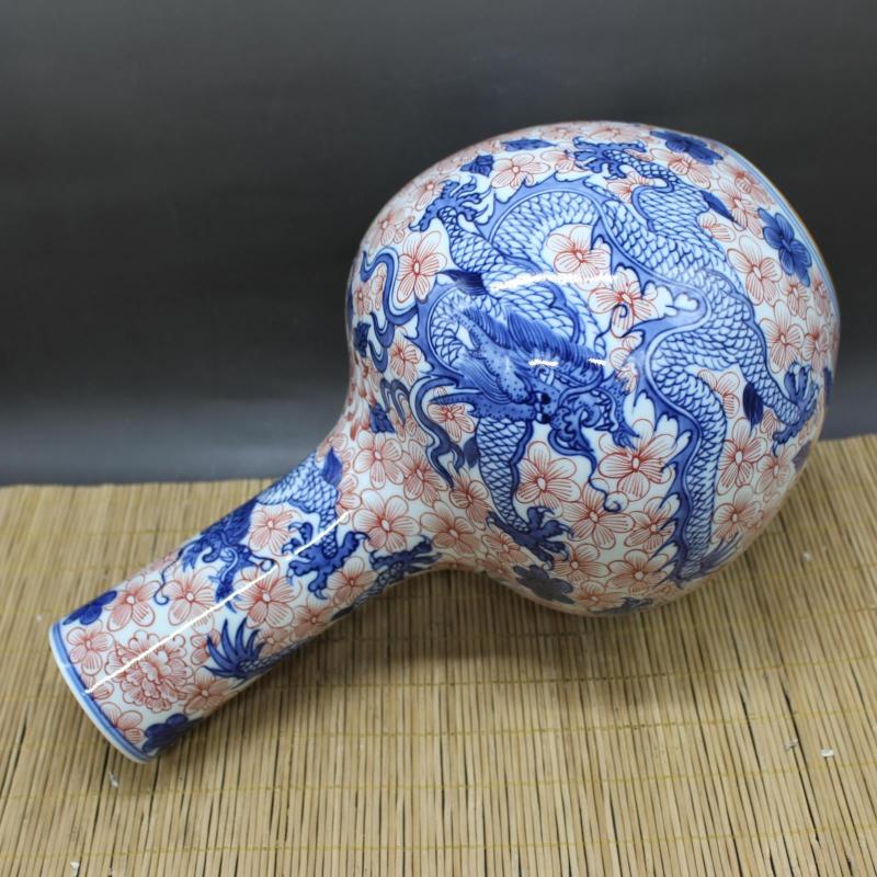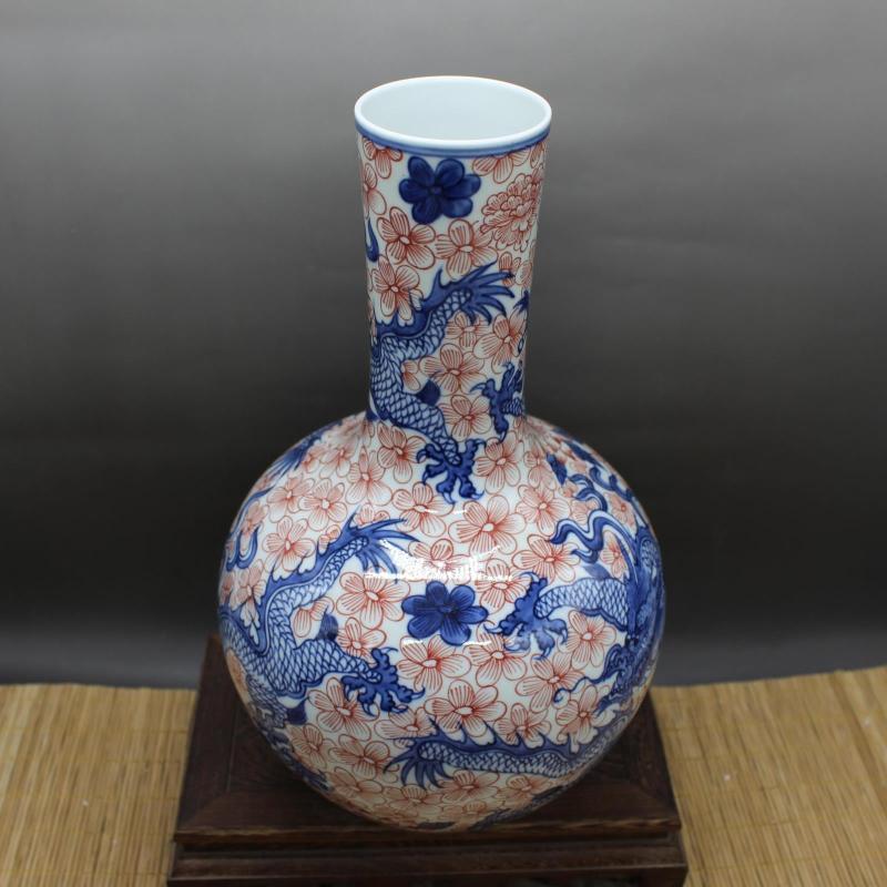 清乾隆年制青花釉里紅穿花龍紋天球瓶全手工仿古瓷器擺件古玩收藏1入