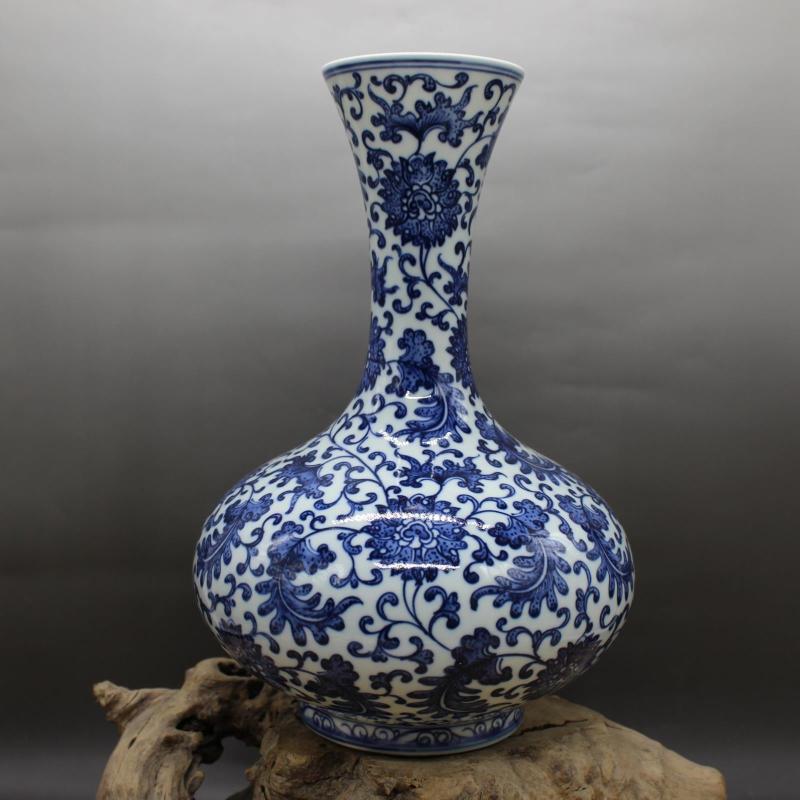清乾隆年制青花纏枝蓮紋賞瓶 全手工景德鎮仿古瓷器擺件古玩收藏1入
